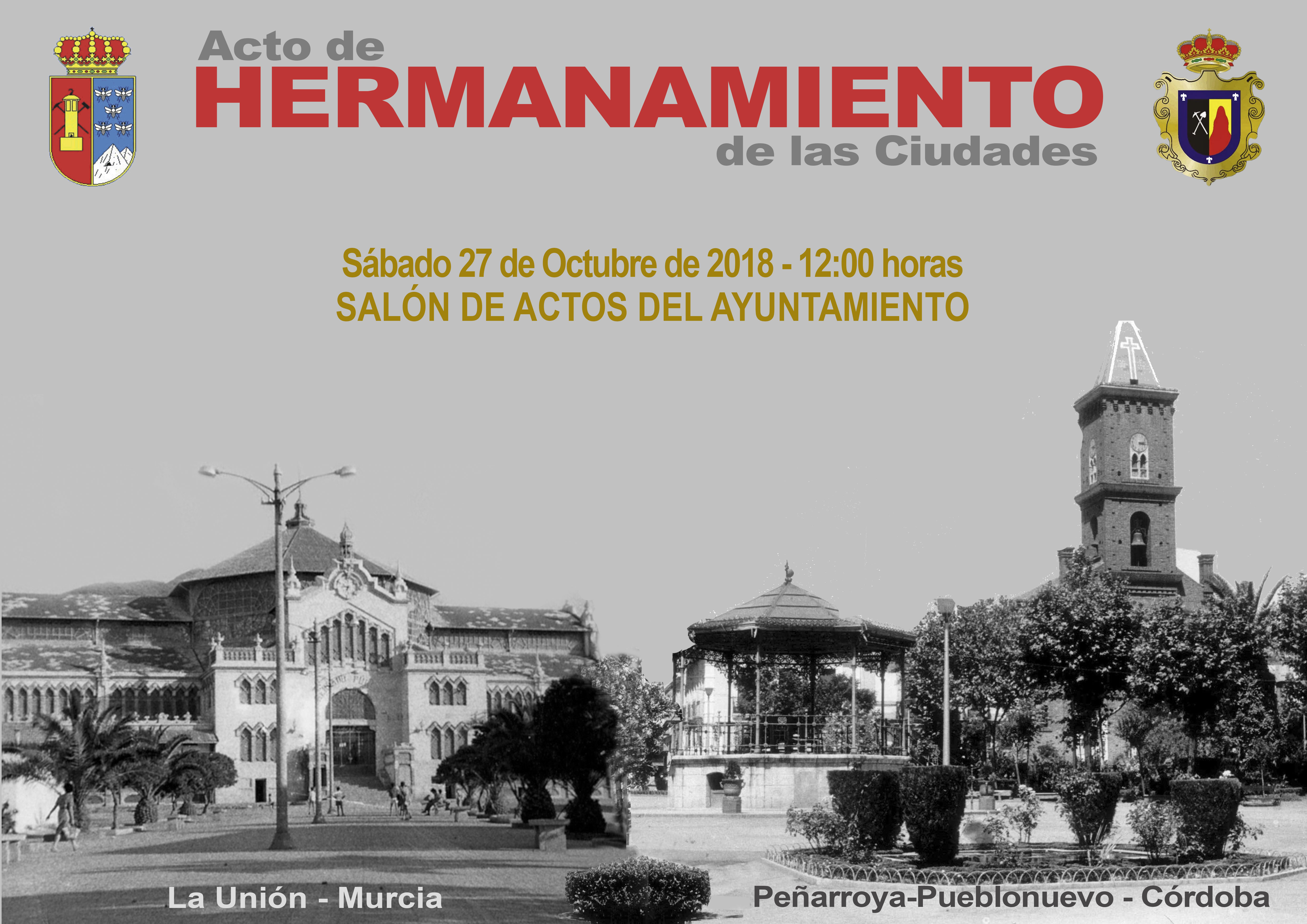 El próximo sábado 27 de Octubre a las 12:00 horas en el Salón de Plenos del Ayuntamiento, tendrá lugar el Acto Oficial de Hermanamiento entre las ciudades de La Unión y Peñarroya- Pueblonuevo.