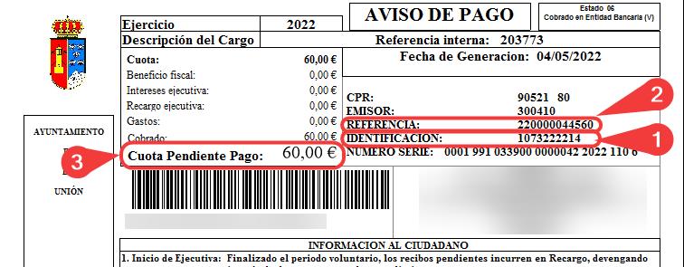 Carta de Pago. Ayuntamiento de La Unión