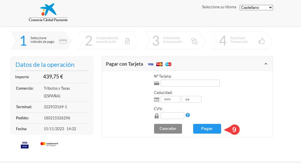 9. Rellenamos el formulario con los datos de nuestra tarjeta y pulsamos Pagar.