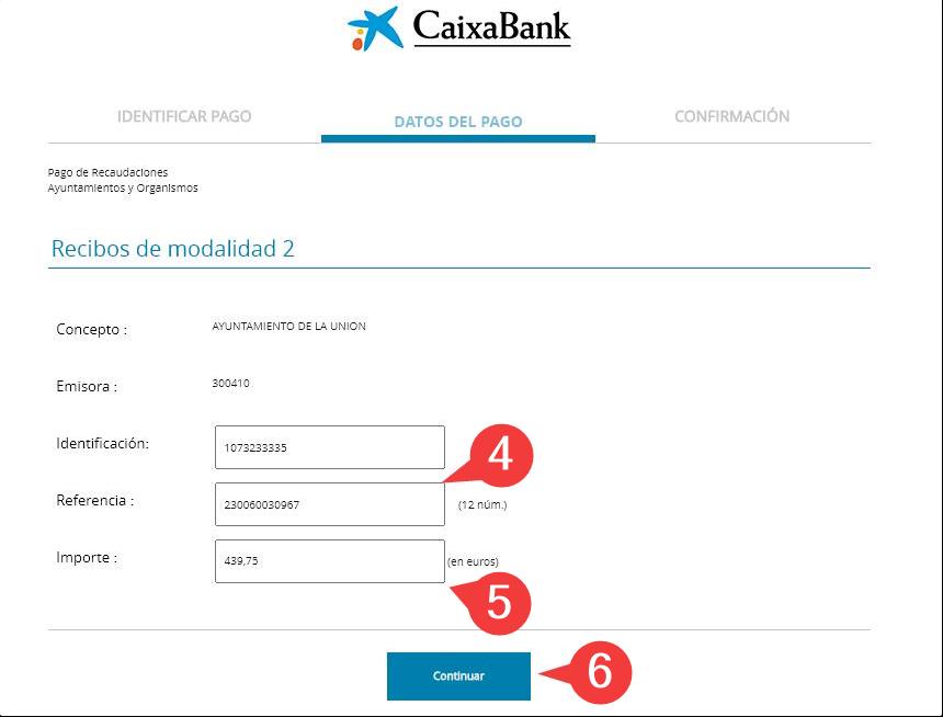 Para pagar los tributos telemáticamente deberá disponer de la carta de pago correspondiente e introducir los siguientes datos: