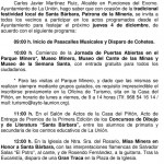 Nuestro Alcalde en Funciones, Carlos Martínez, hace un llamamiento a todos los ciudadanos para que participen de forma activa en los actos previstos, todos ellos de carácter gratuito, incluidas las visitas al Parque Minero y a los Museos de nuestra ciudad, y que disfruten de los mismos.