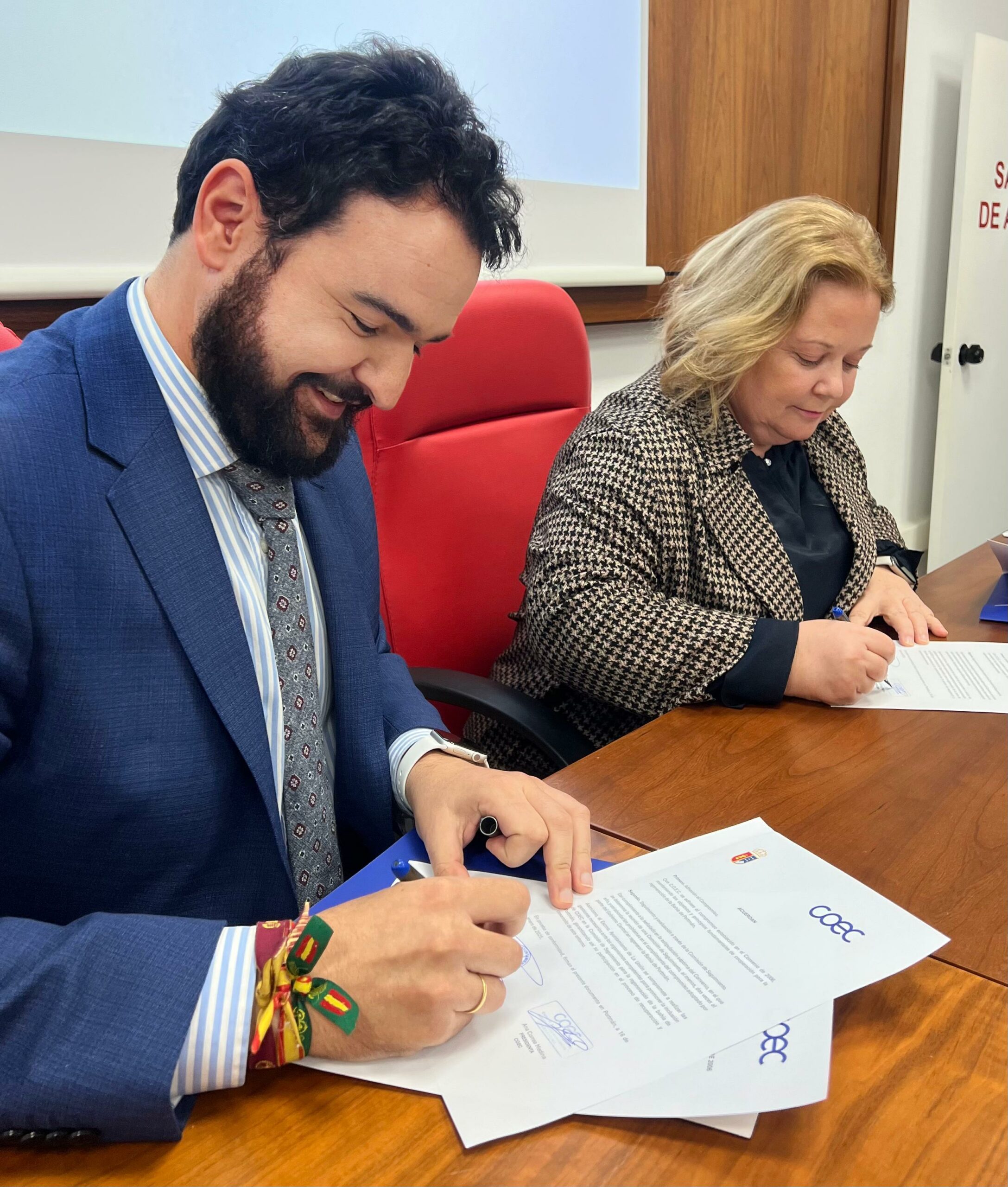 La rúbrica del pacto entre la presidenta de la COEC, Ana Correa Medina, y el alcalde de La Unión, Joaquín Zapata, se ha realizado en la sede de la patronal tras haber visitado primeramente las inmediaciones de la playa del Lastre y la bahía de Portmán, junto con Carlos Bernabé, presidente de la Federación de Asociaciones de Empresarios profesionales de La Unión (FAEPU), y vicepresidente de COEC.