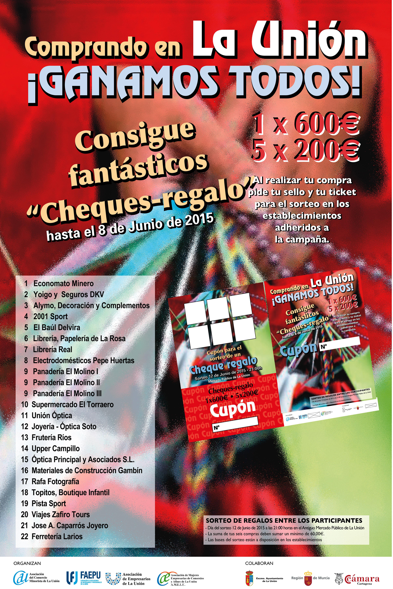 Los establecimientos participantes son: Economato Minero, Yoigo y Seguros DKV, Alymo, Decoración y Complementos, 2001 Sport, El Baúl Delvira, Librería Papelería de La Rosa, Librería Real, Electrodomésticos Pepe Huertas, Panadería El Molino I,II y III, Supermercado El Torraero, Unión Óptica, Joyería–Óptica Soto, Frutería Ríos, Upper Campillo, Óptica Principal y Asociados S.L., Materiales de Construcción Gambín, Rafa Fotografía, Topitos, Boutique Infantil, Pista Sport, Viajes Zafiro Tours, José Antonio Caparrós Joyero, y Ferretería Larios.