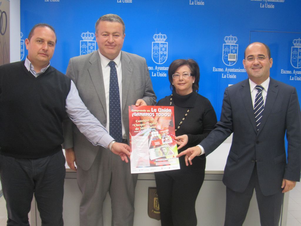 La presentación de la campaña se ha realizado en la Casa del Piñón, y a la misma han asistido nuestro Alcalde, Francisco Bernabé, la Directora General de Comercio, María Dolores Alarcón, el Presidente de la Cámara de Comercio, Navegación e Industria de Cartagena, Miguel Ángel Martínez y el Presidente de la Asociación del Comercio Minorista de La Unión, Federico García.