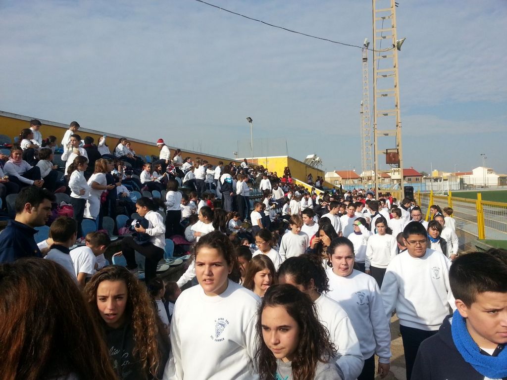 Más de 700 alumnos del Colegio Ntra. Sra. del Carmen de La Unión han participado esta mañana en la primera edición de su Cross Solidario, celebrado en el polideportivo municipal.