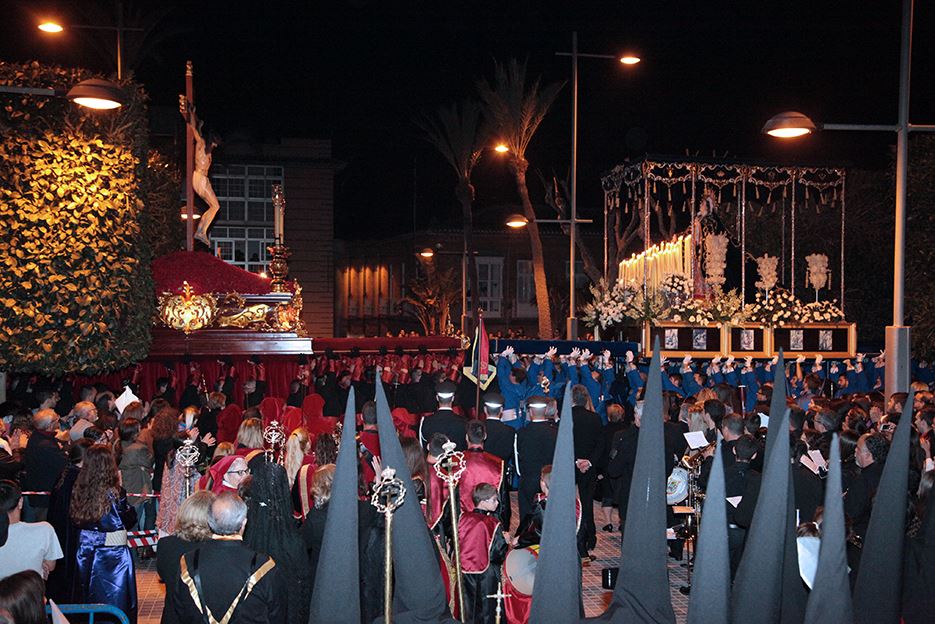 Los desfiles procesionales de Jueves y Viernes Santo en La Unión pusieron de relieve una vez más el fervor y la religiosidad de los unionenses y visitantes, que llenaron las calles de la localidad, al igual que el esplendor y la marcialidad de los distintos cortejos procesionales, que hicieron gala y derroche de nuestra cultura e idiosincrasia minera.