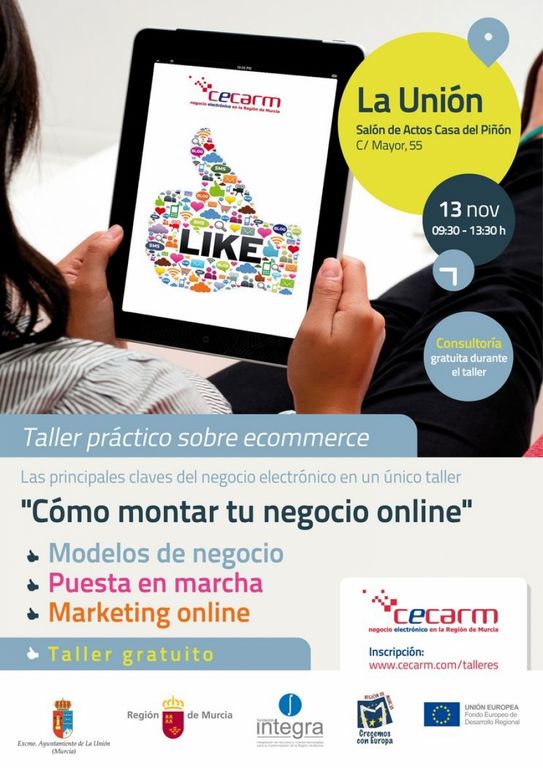 Este taller formativo lo organiza la Concejalía de Promoción Económica y Empleo del Ayuntamiento de La Unión que dirige Antonio Liarte, a través de la Fundación Integra y CECARM. Las inscripciones pueden realizarse a través de la página www.cecarm.com/talleres o en las dependencias de la Concejalía, sitas en la Casa del Piñón, 2ª planta, Teléfono 968 560 660.