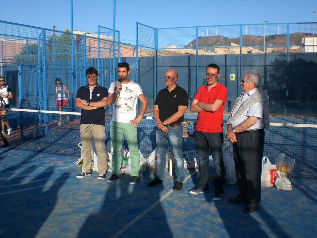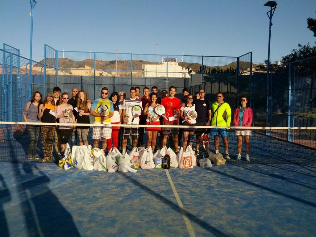 Más de 50 parejas compitieron en buena lid en una gran competición deportiva, en la que los participantes demostraron el elevado nivel del que goza el pádel en nuestro municipio, así como de forma muy especial su espíritu solidario, pues la inscripción consistió en la entrega de una bolsa de alimentos por parte de todos los deportistas, que posteriormente fue donada por Nuevas Generaciones al banco de alimentos de los Servicios Sociales del Ayuntamiento para su distribución entre las personas más necesitadas.