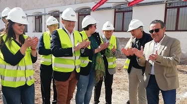 El Alcalde de La Unión, Pedro López Milán y  la Consejera de Turismo y Cultura, Miriam Guardiola, ponen la primera piedra del nuevo Museo Minero, que estará ubicado en el antiguo Edificio Liceo de Obreros.