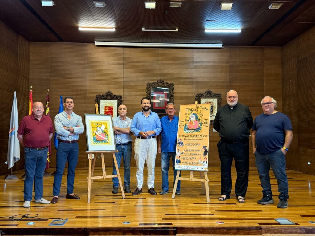 El alcalde de La Unión, Joaquín Zapata, junto a representantes de la Peña Taurina Cultural, ha presentado esta mañana el cartel del Festival Taurino Mixto, que se celebrará el próximo 11 de octubre con motivo de las Fiestas Patronales en honor a la Virgen del Rosario. Un evento que combina el arte del rejoneo con la pasión y entrega de toreros experimentados y el empuje de las nuevas generaciones.