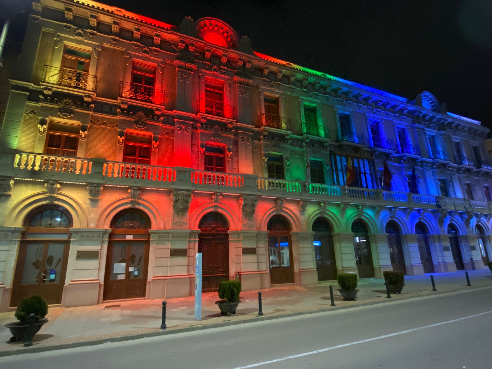 El Ayuntamiento de La Unión se ha iluminado hoy con los colores del arco iris en solidaridad con la celebración del Día Nacional de la enfermedad de Niemann-Pick. El balcón de la fachada de la Casa del Piñón además acoge una pancarta donde se señala esta jornada de visibilidad para los miles de afectados por esta dolencia genética para la que se sigue investigando una fórmula eficaz contra la progresiva afectación de sus pacientes.