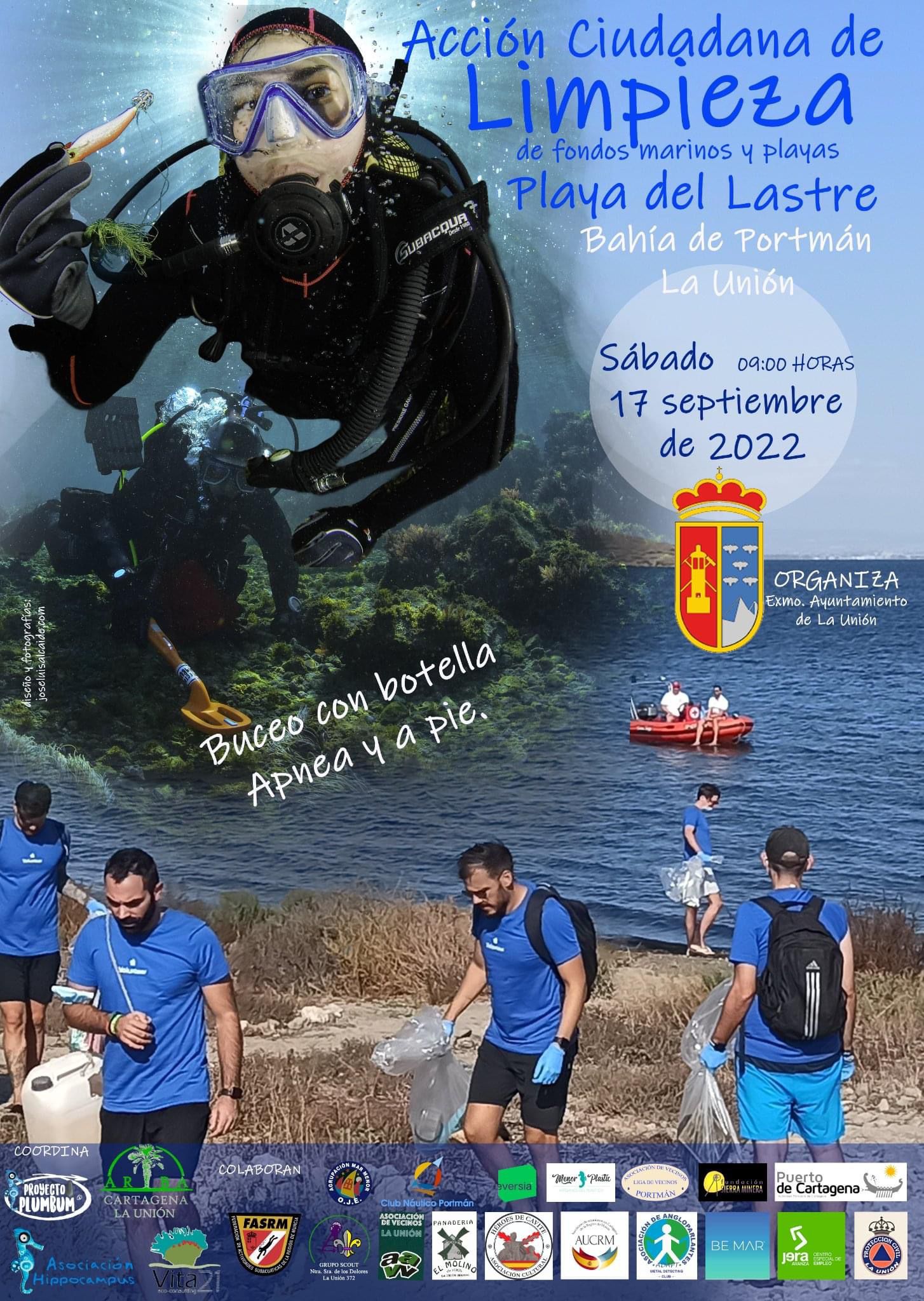 El Ayuntamiento de La Unión ha organizado junto a las asociaciones Hippocampus y Arba Cartagena-La Unión una jornada de macrolimpieza de la playa del Lastre (Portmán) que tendrá lugar a partir de las 9 de la mañana de este sábado 17 de septiembre.