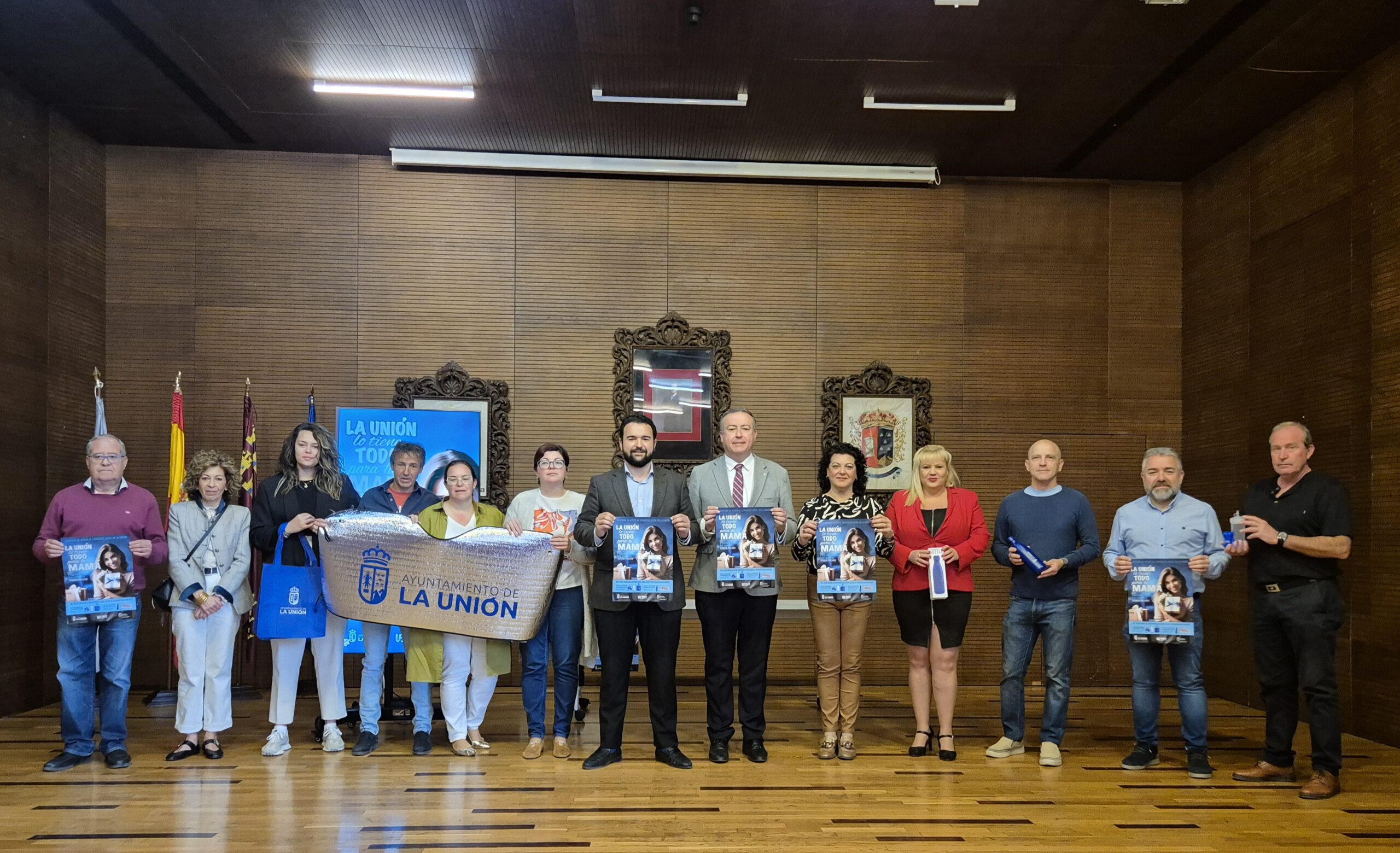 El alcalde ha presentado hoy, junto con el presidente de la Federación de Asociaciones de Empresarios y Profesionales de La Unión (FAEPU), Carlos Bernabé, así como la concejal de Hacienda, Tere López y la concejal de Comercio, Laura Giménez, la campaña ‘La Unión lo tiene todo para tu mamá’, que se llevará a cabo desde hoy hasta el 4 de mayo, con motivo de la festividad del Día de la Madre, el próximo domingo día 5.