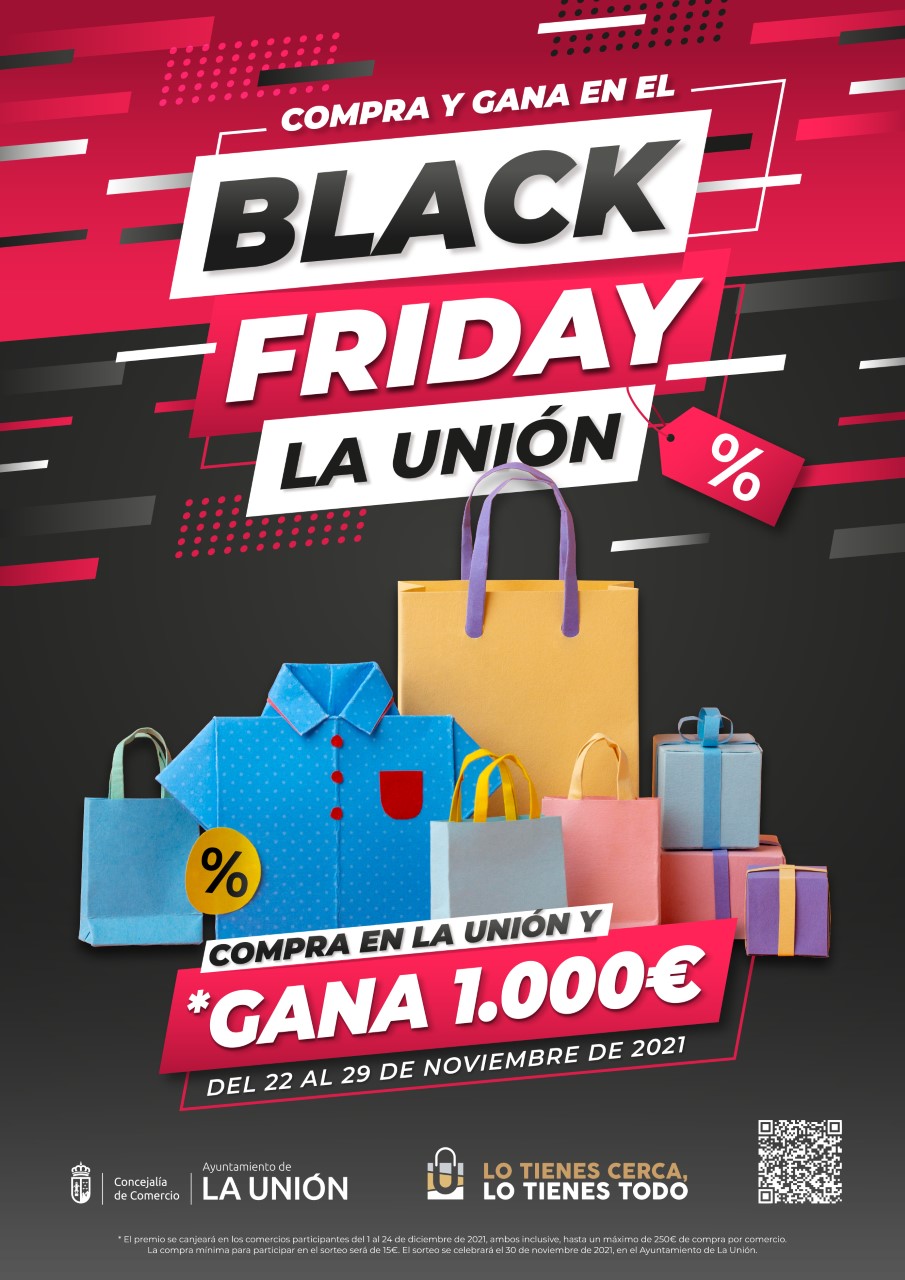 La concejalía de Comercio del Ayuntamiento de La Unión ha lanzado una campaña especial de promoción del Black Friday en el municipio, en la que se sorteará un único premio de 1.000 euros que se podrá canjear como compras en los establecimientos adheridos.
