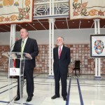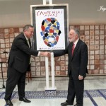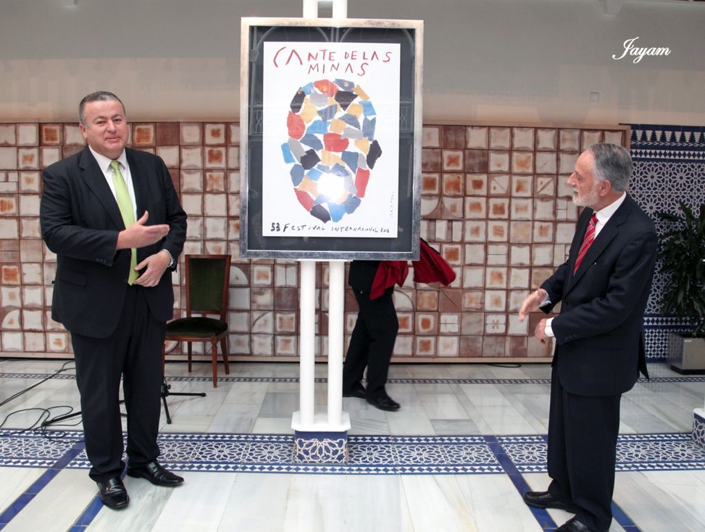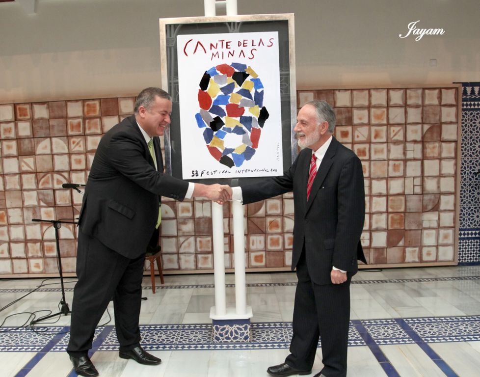 El acto estuvo presidido por el Presidente de la Asamblea Regional e Hijo Predilecto de La Unión, Francisco Celdrán, y por el Alcalde de La Unión y Presidente Ejecutivo de la Fundación Cante de las Minas, Francisco Bernabé, quien en su alocución, tras agradecer la donación pictórica de Eduardo Arroyo, desveló la concesión de dos nuevos Castilletes de Oro que se van a otorgar durante el Festival y que se suman a los ya anunciados de Pablo Berger, Juan Mari Arzak, Juan Ramón Lucas y Enrique Ponce.