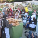 Fueron más de ochocientos alumnos, profesores y personal del Centro los que consiguieron trasladar el pueblo de Belén al colegio, así se representa el mercado de frutas, telas y demás junto a alfareros, panaderos, soldados, castañeras, lavanderas, pastores, etc. Las imágenes ofrecen a los pobladores de Belén en plena faena incluyendo el portal con un niño Jesús.