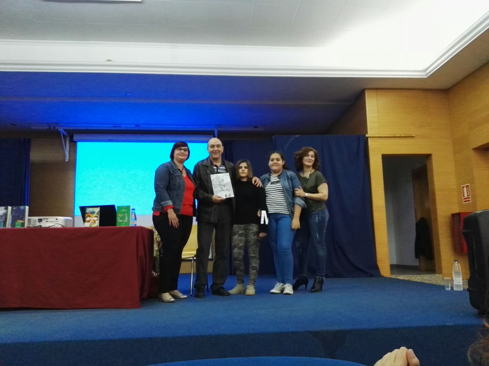 Los escolares se han mostrado muy participativos e interesados en este encuentro literario y una de las alumnas del IES Sierra Minera, concretamente de 2º de la ESO, ha realizado un cartel anunciador de este evento que ha mostrado al autor del libro.