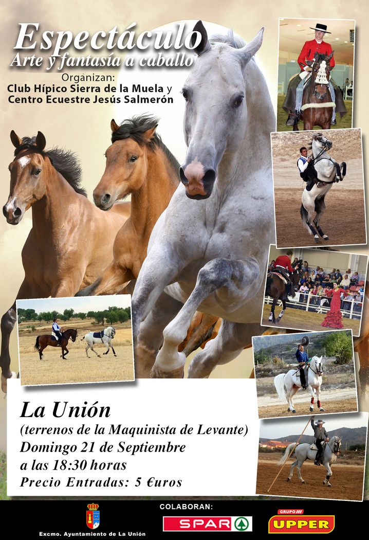 Y para finalizar el fin de semana lúdico, el Club Hípico Sierra de la Muela y el Centro Ecuestre, dirigido por el unionense Jesús Salmerón, organizan un espectáculo ecuestre denominado “Arte y fantasía a caballo”, que tendrá lugar a partir de las 18:30 horas en las instalaciones de la Maquinista de Levante.