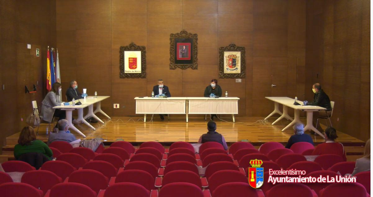 El Ayuntamiento de La Unión celebra este martes 25 de mayo, a las 17 horas, el pleno ordinario bimensual donde de forma presencial se podrán reunir hasta 40 asistentes en el patio de butacas según permite el último decreto de la consejería de Sanidad de acuerdo al protocolo de medidas anti-Covid19.