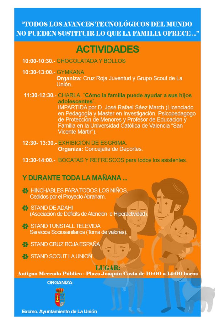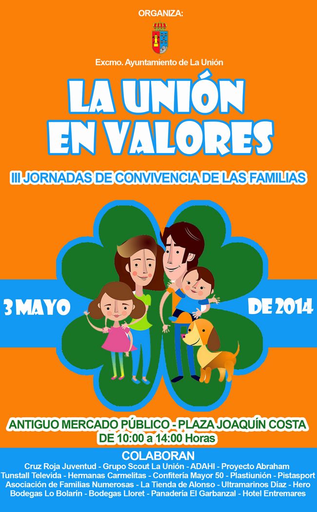 El próximo sábado, día 3 de mayo, tendrán lugar las III Jornadas de Convivencia de las Familias, denominadas “La Unión en Valores”, y que se van a celebrar en el Antiguo Mercado Público, organizadas por la Concejalía de Política Social, que dirige Rosa Pagán.
