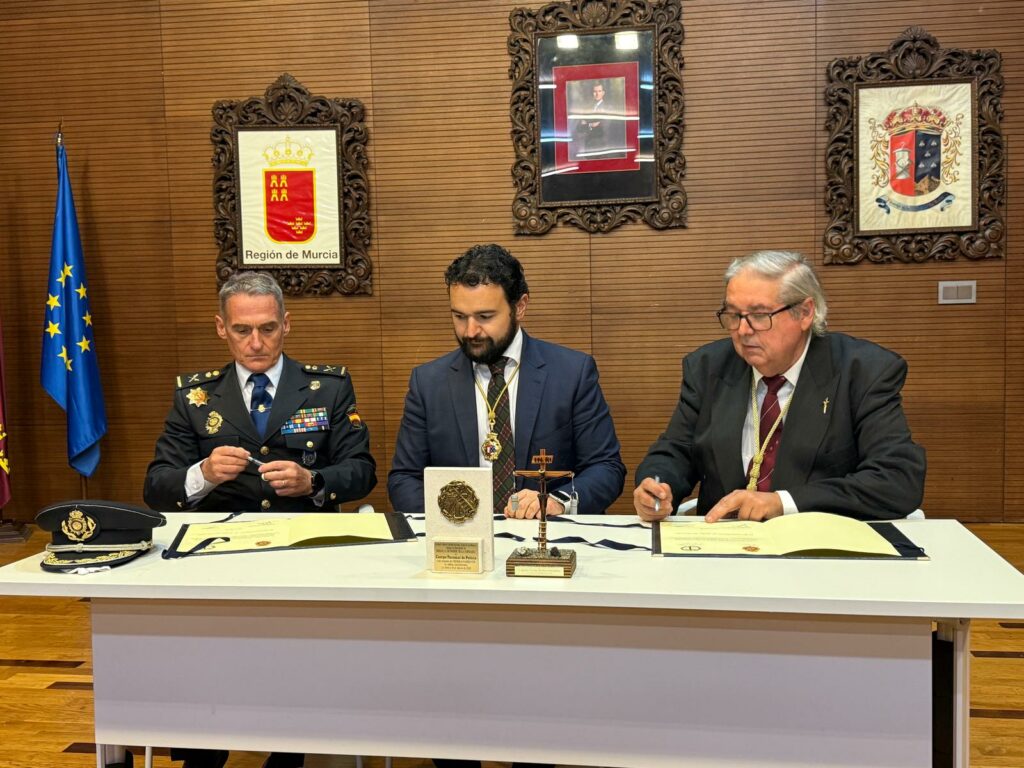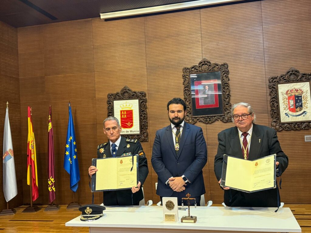 Este año ha sido aún más especial gracias al hermanamiento con la Policía Nacional de Cartagena y la Cofradía del Santísimo Cristo de los Mineros. En este emotivo gesto, el Hermano Mayor entregó un obsequio al Jefe Superior de Policía, Ignacio del Olmo, en señal de unión y reconocimiento.