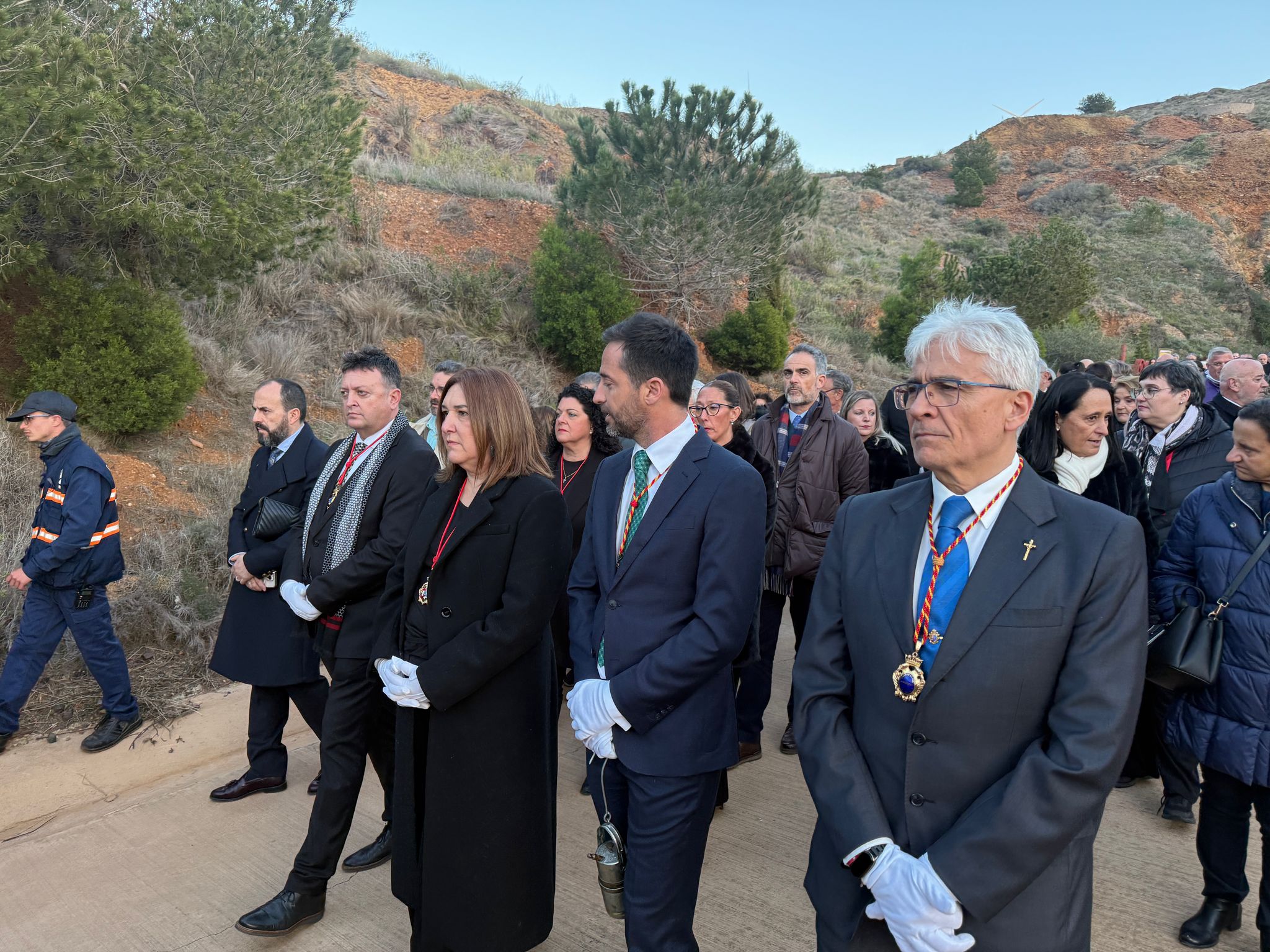 Queremos expresar nuestro profundo agradecimiento a todos los que han hecho posible esta emotiva jornada y a quienes nos han acompañado en esta tradición tan arraigada. Entre ellos, destacamos la presencia del alcalde, Joaquín Zapata, el Hermano Mayor de la Cofradía del Santísimo Cristo de los Mineros, José Cortado, el Consejero de Economía y Hacienda, Luis Marín, así como de los Cuerpos y Fuerzas de Seguridad del Estado, que han querido compartir este momento con nosotros.