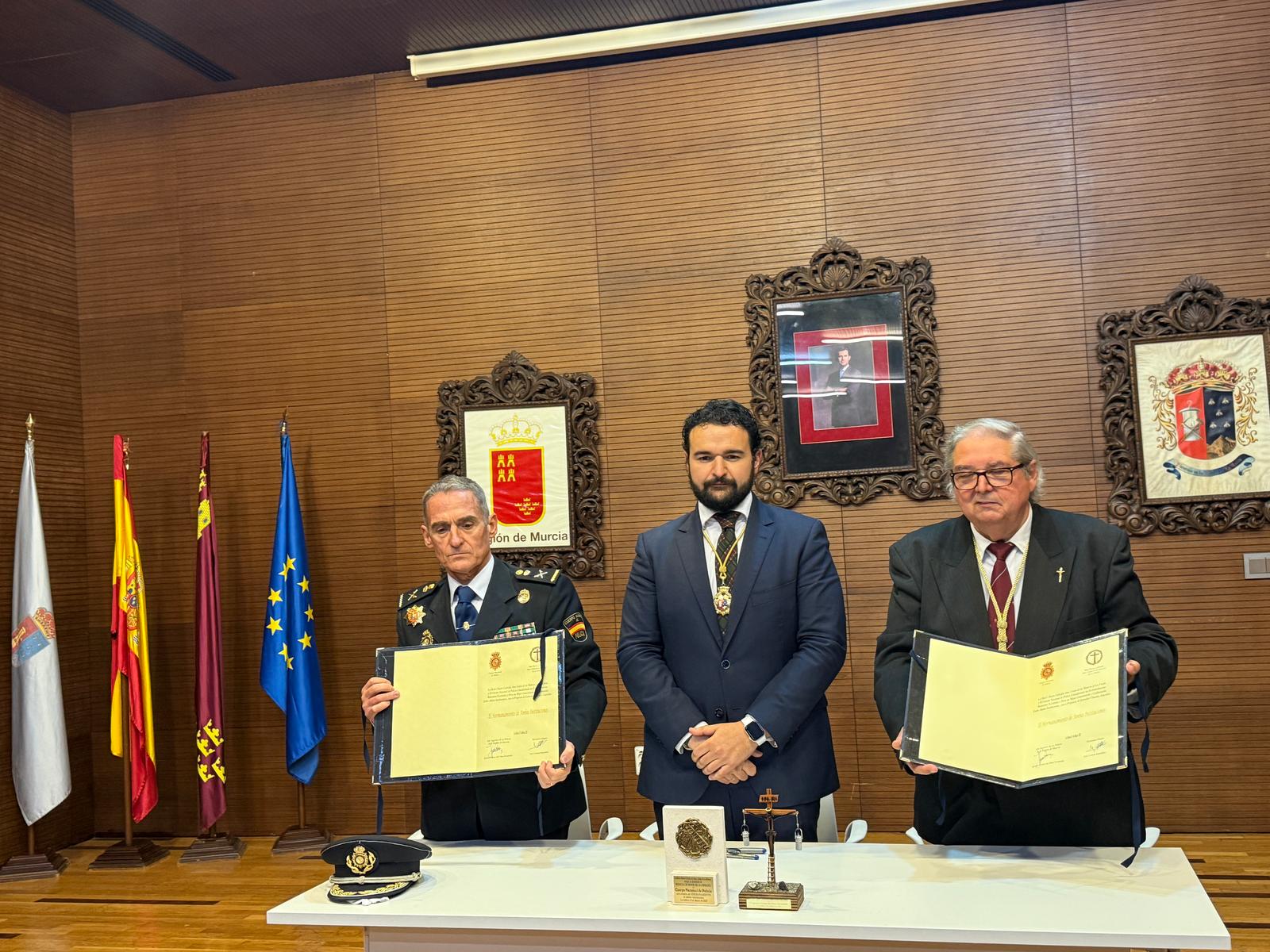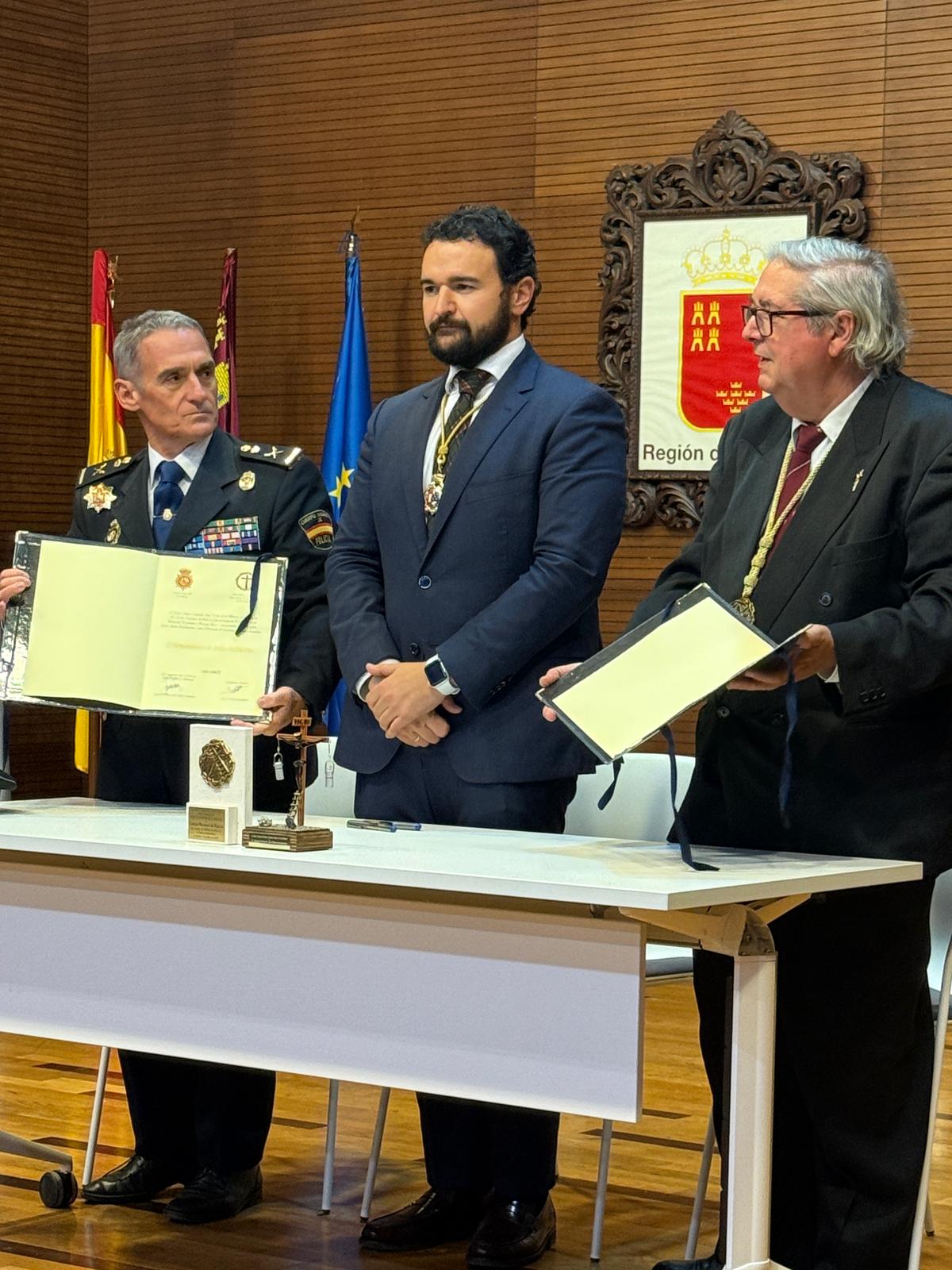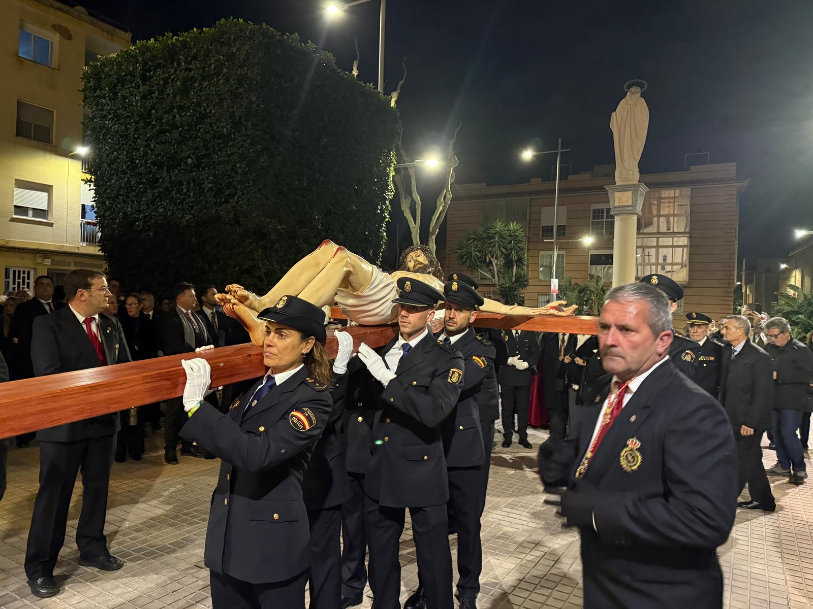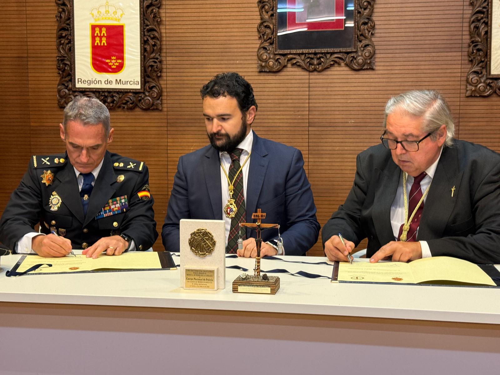 Este año ha sido aún más especial gracias al hermanamiento con la Policía Nacional de Cartagena y la Cofradía del Santísimo Cristo de los Mineros. En este emotivo gesto, el Hermano Mayor entregó un obsequio al Jefe Superior de Policía, Ignacio del Olmo, en señal de unión y reconocimiento.