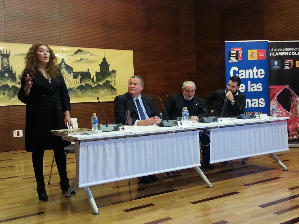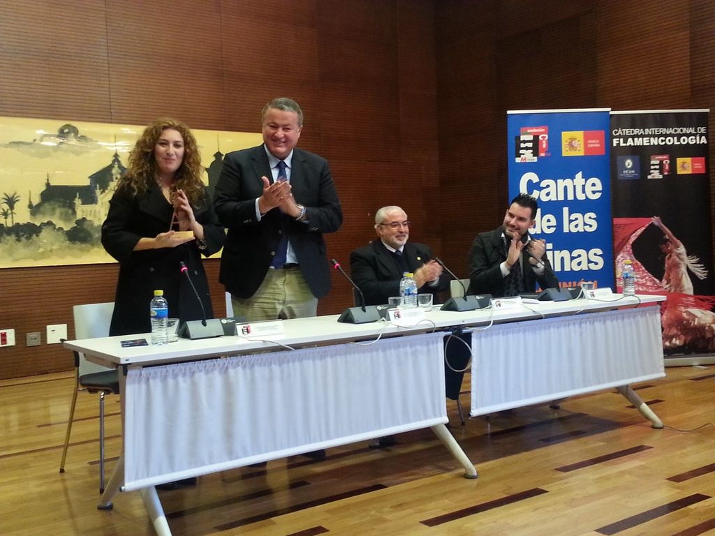 El acto se ha desarrollado en un abarrotado salón de actos de la Casa del Piñón, sede del Ayuntamiento de La Unión, y el mismo también ha contado con la presencia de nuestro Alcalde y Presidente Ejecutivo de la Fundación Cante de las Minas, Francisco Bernabé, del Presidente de la UCAM, José Luis Mendoza, y del Coordinador de la Escuela, el guitarrista Carlos Piñana. Igualmente, han estado presentes el esposo de la artista, el matador de toros Javier Conde, numerosos representantes de la sociedad civil unionense y los concejales del equipo de gobierno municipal, encabezados por el teniente de alcalde de cultura y director del Festival de las Minas, Julio García.
