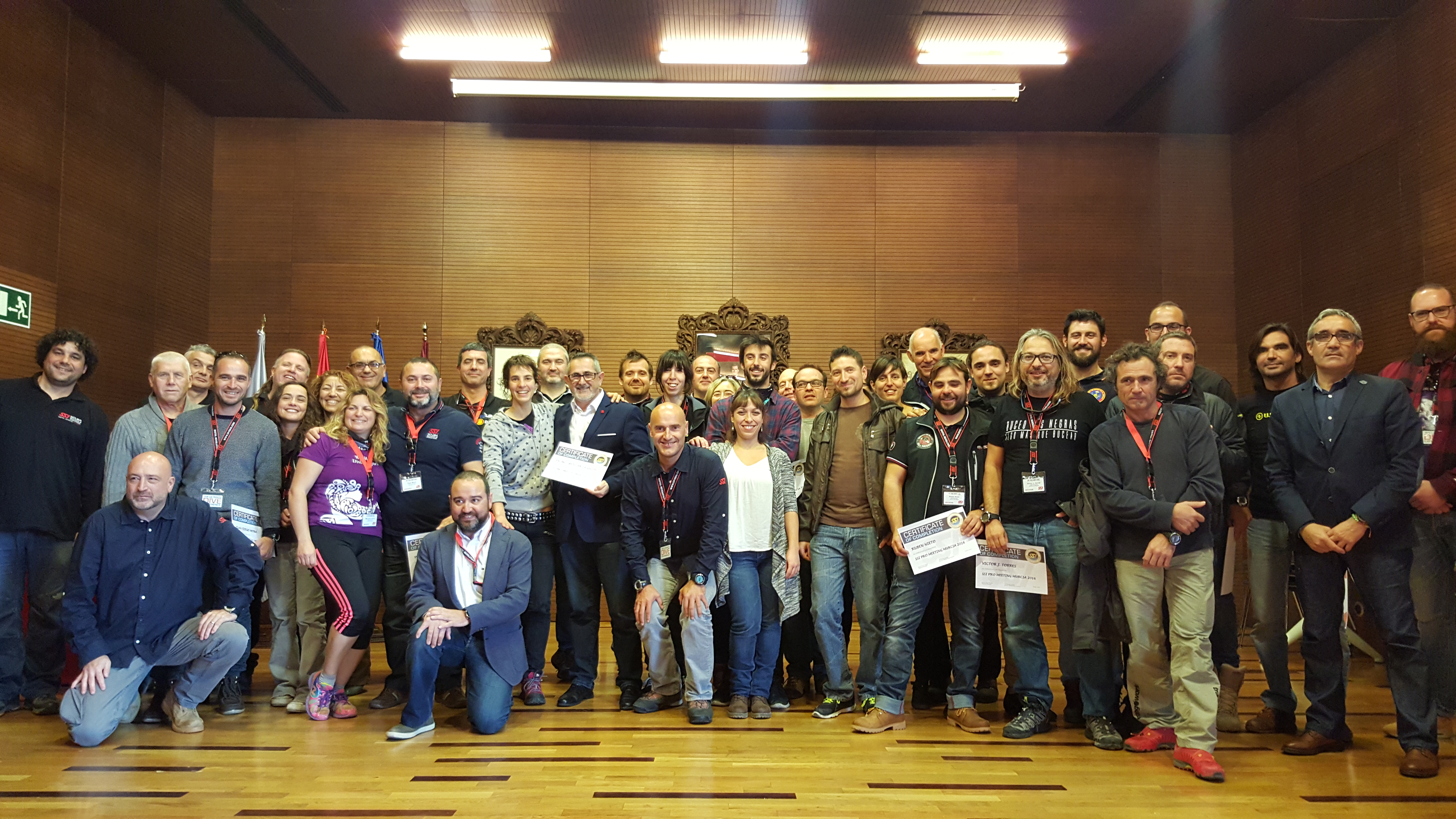 El Salón de Plenos del Ayuntamiento de La Unión, fue el escenario elegido por la Scuba Schools International para la entrega de diplomas del curso de buceo que tuvo lugar el pasado fin de semana en la Piscina Municipal.