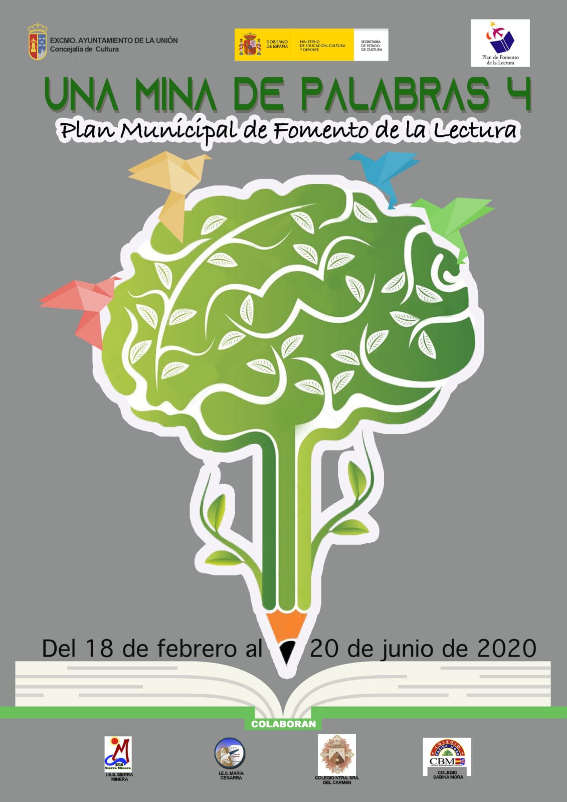 Desde la Concejalía de Cultura queremos agradecer tanto a loa profesores y alumnos de secundaria de los IES Sierra Minera, IES Maria Cegarra Salcedo, Cooperativa de Enseñanza Sabina Mora y Ntra. Sra. del Carmen la participación y entrega con la que vienen trabajando desde que comenzara nuestra ” Mina de palabras”.