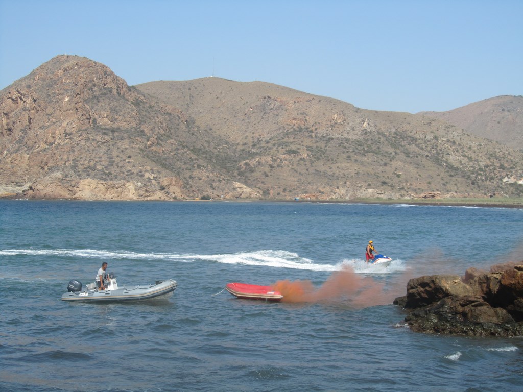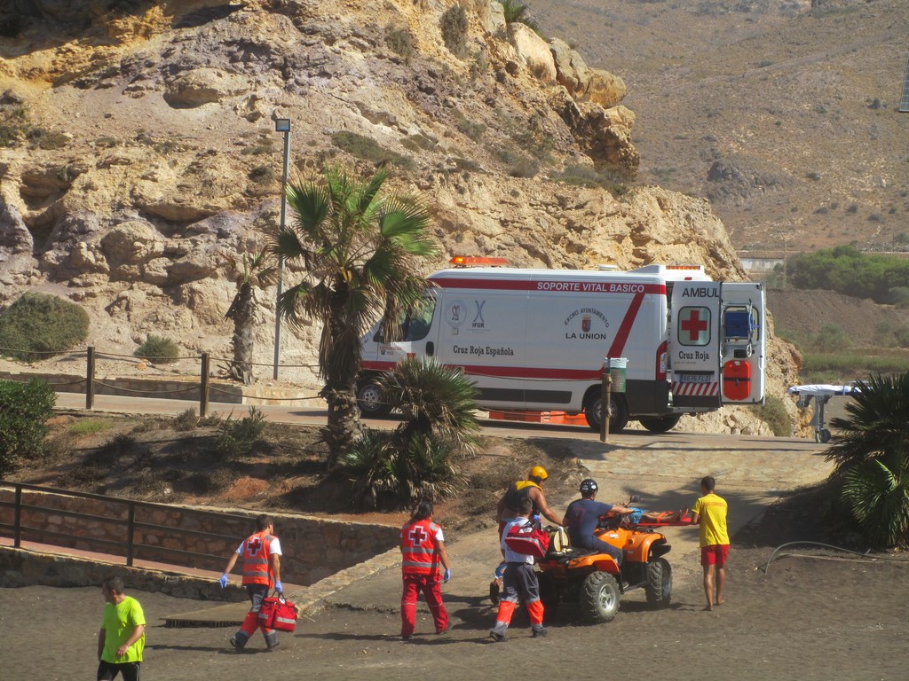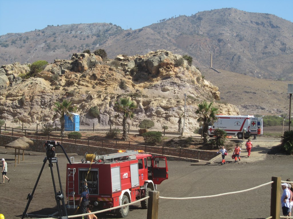 En la prueba, que ha demostrado el altísimo nivel de cualificación de los profesionales que velan por la seguridad de nuestras playas y costas, han participado un total de 16 efectivos y los siguientes medios materiales: una moto de agua con camillas de rescate, una embarcación semirígida, un camión de bomberos, un quad, un vehículo todoterreno y una ambulancia de Cruz Roja.