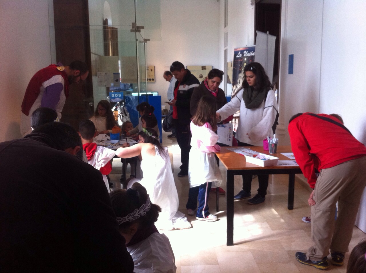 Los más pequeños también pudieron disfrutar de estas visitas, de una forma muy peculiar, a través de los talleres infantiles organizados, especialmente para ellos, donde pudieron convertirse en romanos y mineros por una mañana, realizando un mosaico muy particular y herramental minero, así como recordando juegos populares olvidados en la actualidad.