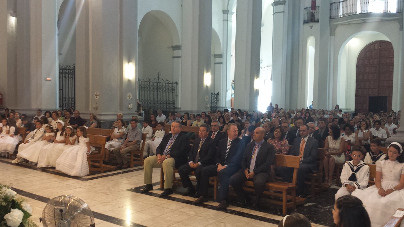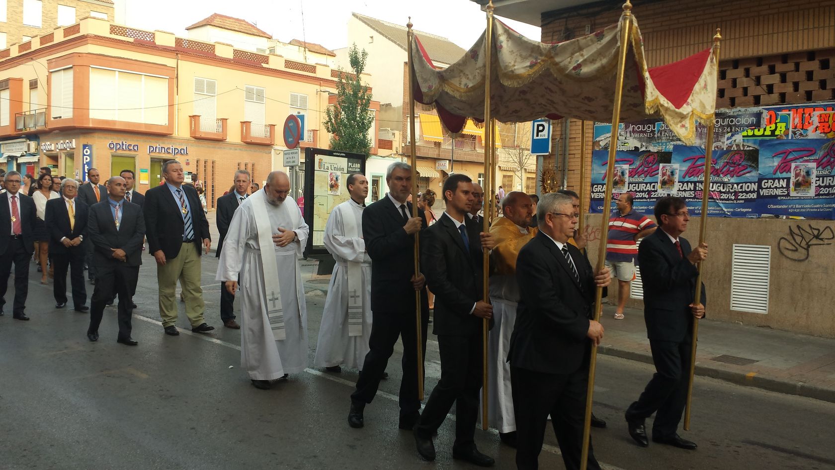 El Santísimo, que procesionó bajo palio siendo portado por los titulares de ambas parroquias, Ginés Luis Vicente y Luis Miguel García, acompañados del sacerdote unionense Antonio Morales, estuvo escoltado por cientos de fieles y niños que este año han realizado su Primera Comunión, además de por nuestro Alcalde, Francisco Bernabé, acompañado de los Concejales del Equipo de Gobierno, y del Hermano Mayor de la Cofradía del Santísimo Cristo de los Mineros, Domingo Alajarín, junto con los Presidentes de las Agrupaciones de la Semana Santa y demás miembros de la Mesa de la Cofradía.