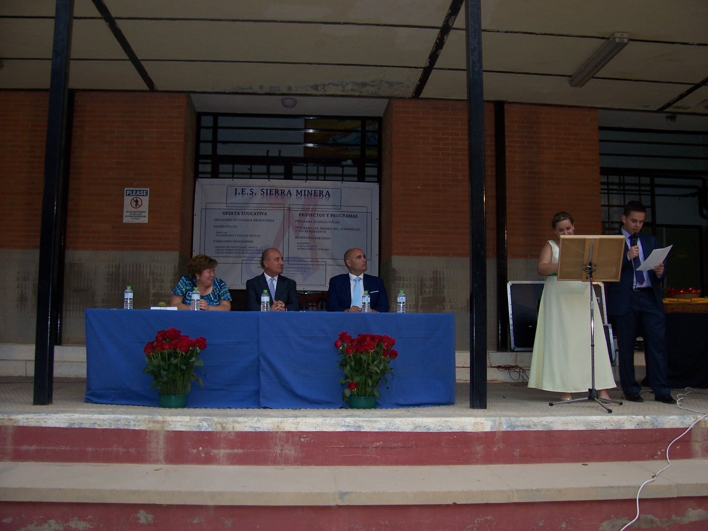 En el acto se pronunciaron palabras de reconocimiento y felicitación por parte de los representantes de alumnos, profesorado, familias y administración educativa y estuvo amenizado con una actuación musical a cargo del coro del IES Sierra Minera. Finalmente se impusieron las becas e insignias con los colores y escudo del centro.