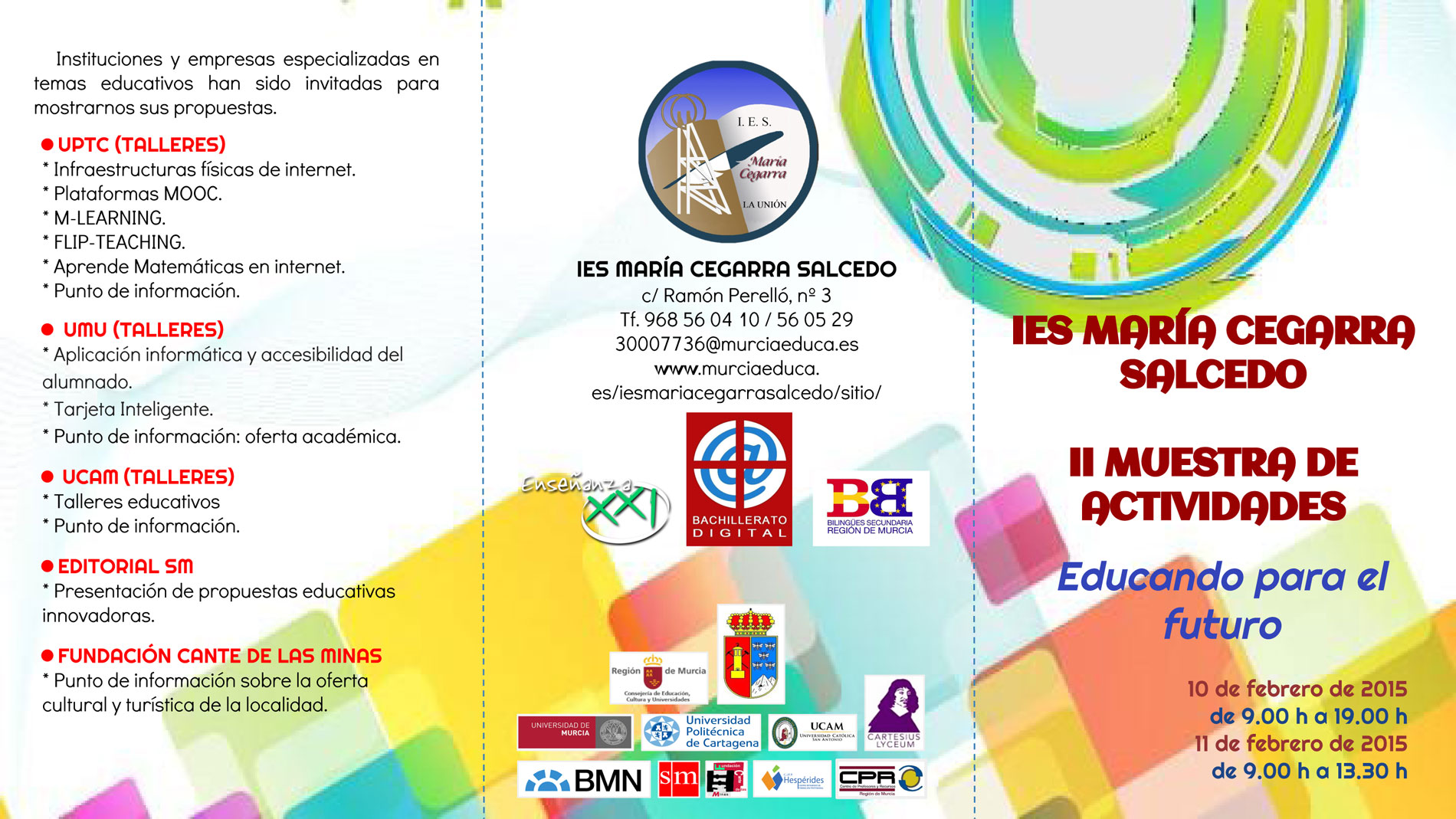 El Instituto de Educación Secundaria “María Cegarra Salcedo” ha realizado hoy la inauguración de sus II Jornadas de Puertas Abiertas, que se van a celebrar entre hoy y mañana en el Antiguo Mercado Público de La Unión.