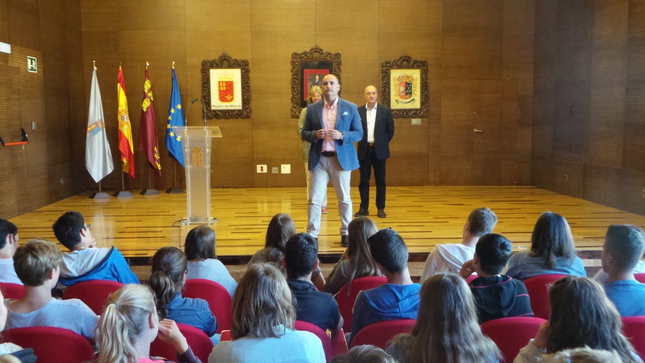 El Alcalde Julio García, ha recibido esta mañana en la Casa del Piñón, a un grupo alumnos y profesores del IES Sierra Minera de La Unión, que junto con  el centro de secundaria Christoph-Probst-Gymnasium, situado en Gilching (Alemania) han participado en la actividad “Intercambio Escolar”.
