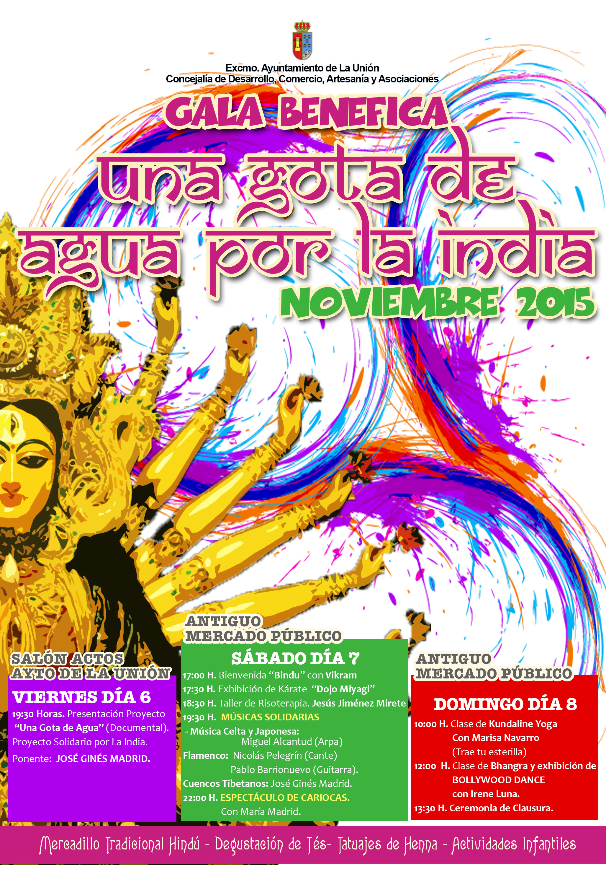 Las Jornadas se prolongarán a lo largo del fin de semana, en el Antiguo Mercado Público, en donde se llevarán a cabo una serie de actividades como exhibición de karate por la escuela Dogo Miyagi, un concierto de músicas solidarias de diferentes países, espectáculo de cariocas, clases de kundaline yoga, exhibición de Bollywood dance.