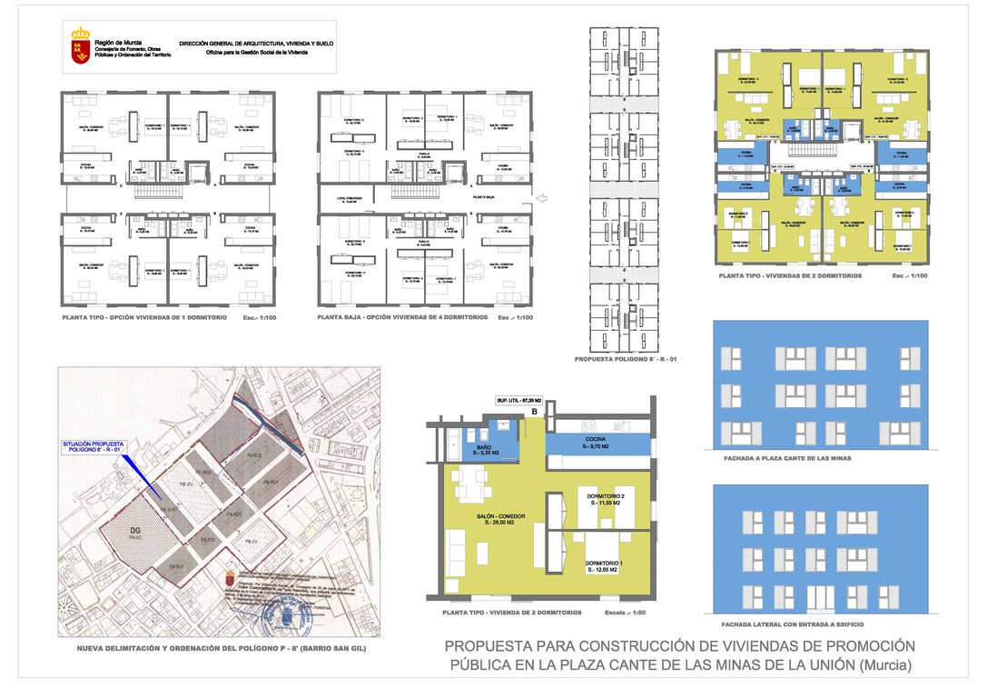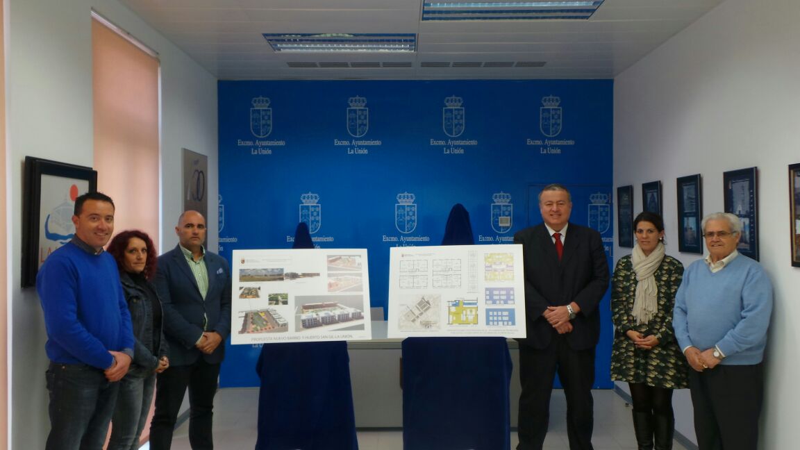 El Alcalde de La Unión, Julio García, presentó junto con el Consejero de Fomento, Obras Públicas y Ordenación del Territorio, Francisco Bernabé, el proyecto de construcción de cuatro bloques de viviendas sociales junto al nuevo Colegio Rey Juan Carlos I de la localidad, “que va a suponer la completa regeneración de esta zona y va a facilitar un alojamiento en muy buenas condiciones a un total de entre 40 y 48 familias”.