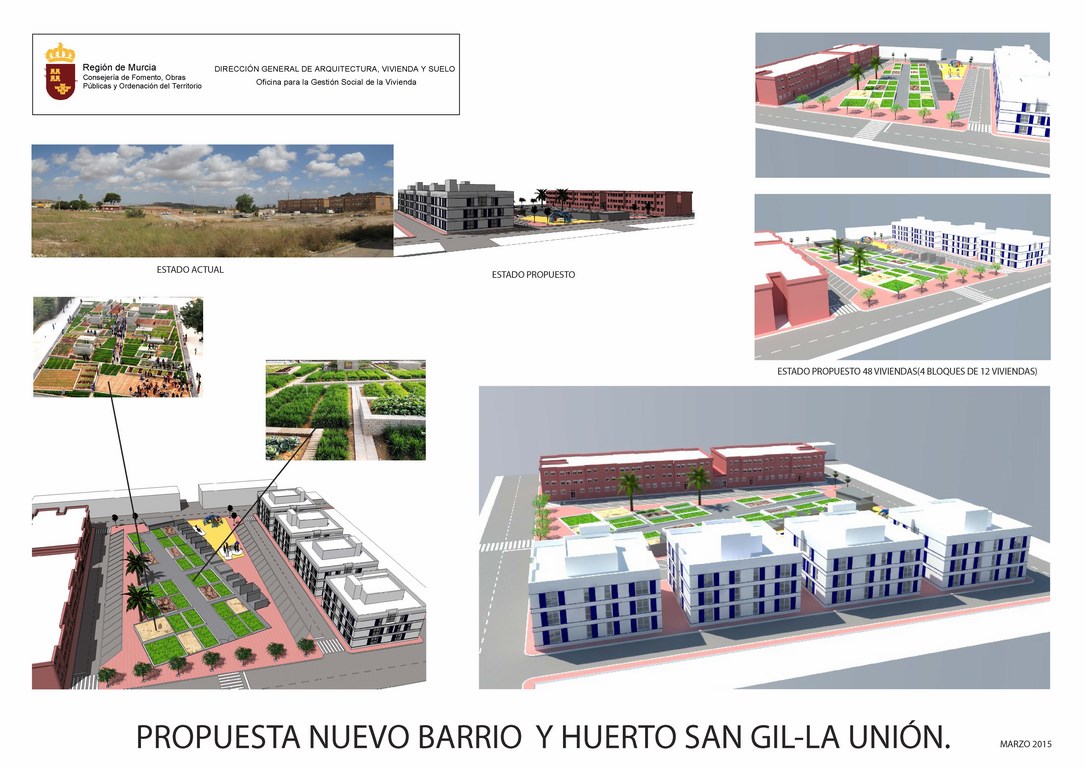Asimismo, dentro de las obras de urbanización se propone la implantación de un huerto urbano, en parte de la zona verde interior de 3.609 metros cuadrados, “con la idea de ser utilizado para favorecer el sentido de comunidad en el barrio, fomentar la convivencia y proporcionar una alternativa didáctica e integradora a los residentes”, señaló el Alcalde de La Unión.