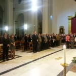 Previamente el templo del Rosario había servido de escenario para la solemne misa que tuvo lugar en memoria de todos los mineros fallecidos de La Unión, que fue presidida por el Párroco D. Ginés Luis Vicente. Durante la Eucaristía se realizó una ofrenda por parte del Presidente del Hogar de Personas Mayores, Salvador Martínez, mientras que la Rondalla de la entidad interpretaba los cánticos litúrgicos.