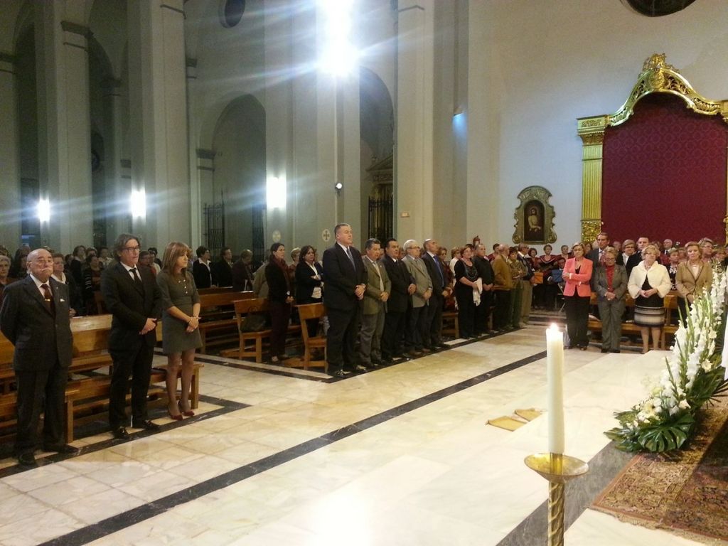 Previamente el templo del Rosario había servido de escenario para la solemne misa que tuvo lugar en memoria de todos los mineros fallecidos de La Unión, que fue presidida por el Párroco D. Ginés Luis Vicente. Durante la Eucaristía se realizó una ofrenda por parte del Presidente del Hogar de Personas Mayores, Salvador Martínez, mientras que la Rondalla de la entidad interpretaba los cánticos litúrgicos.