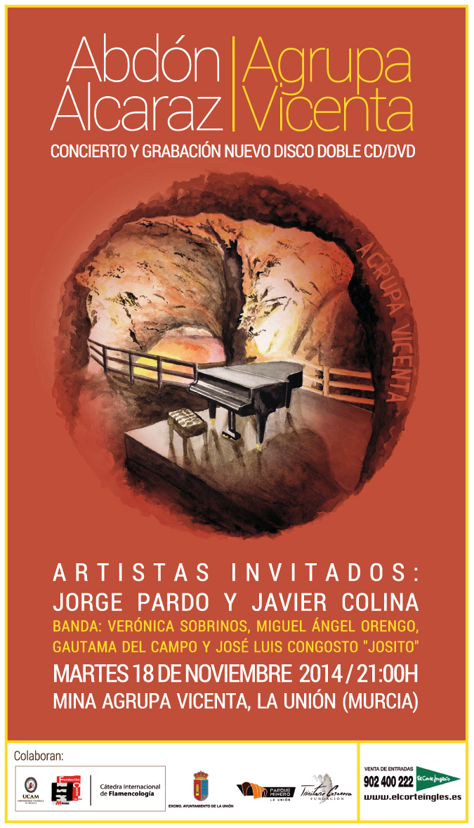 El acto de presentación ha contado, además de con el músico, con la presencia de nuestro Alcalde y Presidente Ejecutivo de la Fundación Cante de Las Minas, Francisco Bernabé, del Director de Relaciones Externas de El Corte Inglés, Santiago Sánchez, y María Dolores Casanova en nombre de la Fundación Trinitario Casanova entidad que patrocina el evento, que también cuenta con la colaboración de la Cátedra Internacional de Flamencología de la Universidad Católica de Murcia (UCAM) y la Fundación Cante de las Minas, del Parque Minero y del Ayuntamiento de La Unión.