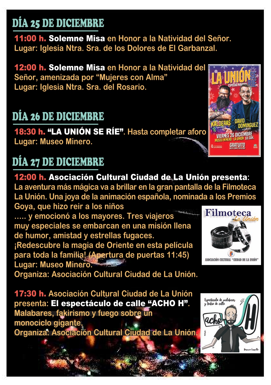 El Ayuntamiento de La Unión presenta su Programa de Navidad 2025, lleno de actividades para disfrutar en familia, apoyar a nuestro comercio local y vivir juntos la magia de estas fechas tan especiales.