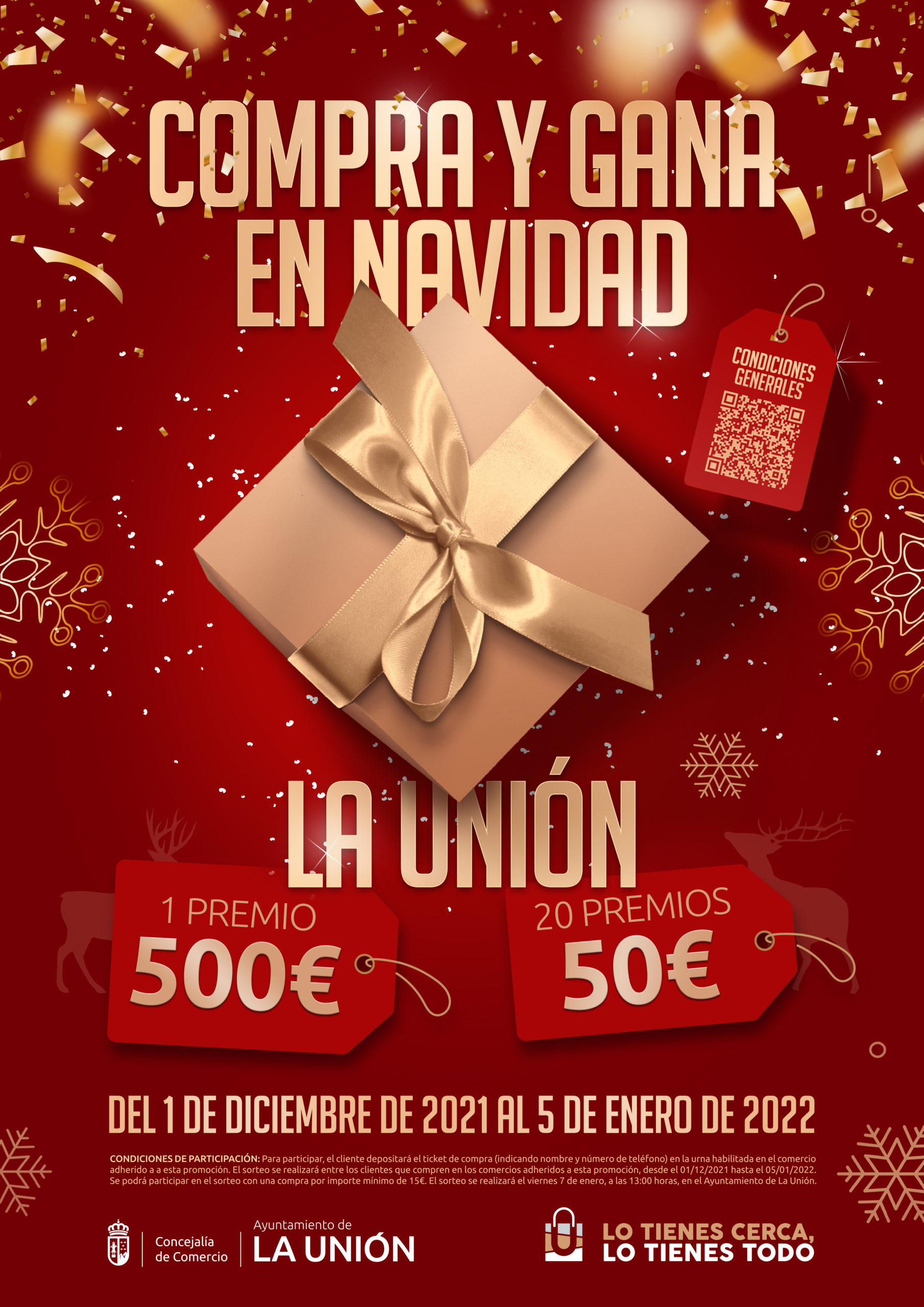 La promoción comienza el 1 de diciembre de 2021 y finaliza el 5 de enero de 2022 e incluye un gran sorteo de un premio de 500 euros y de 20 vales de 50 euros a canjear en los comercios adheridos a la campaña.