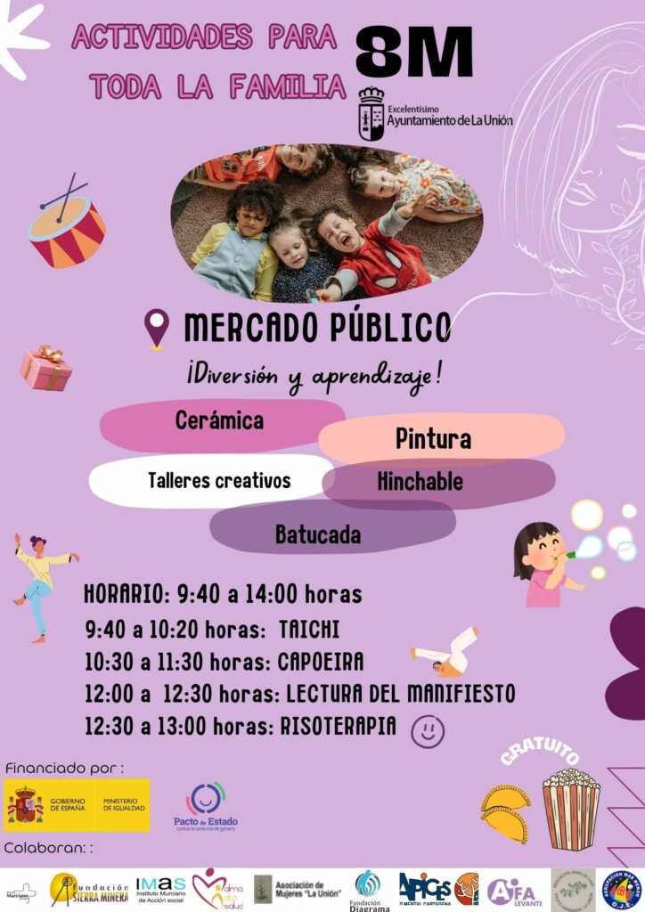 El Ayuntamiento de La Unión desde la Concejalía de Servicios Sociales ha organizado una completa agenda de actividades para conmemorar el Día Internacional de la Mujer, que se celebrará del 3 al 8 de marzo con eventos culturales, deportivos y de concienciación social.
