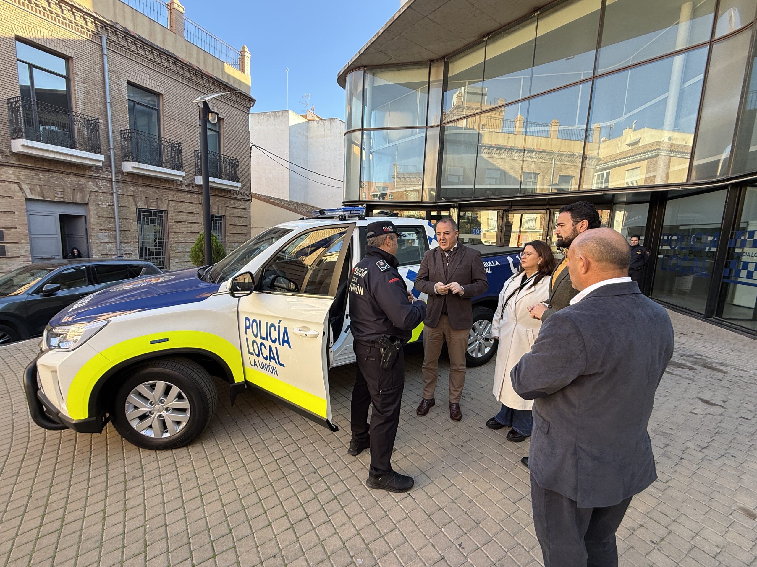 El director general de Administración Local, Francisco Abril, ha visitado hoy La Unión para hacer entrega oficial al alcalde, Joaquín Zapata, del nuevo vehículo que se suma a la flota de la Policía Local del municipio.