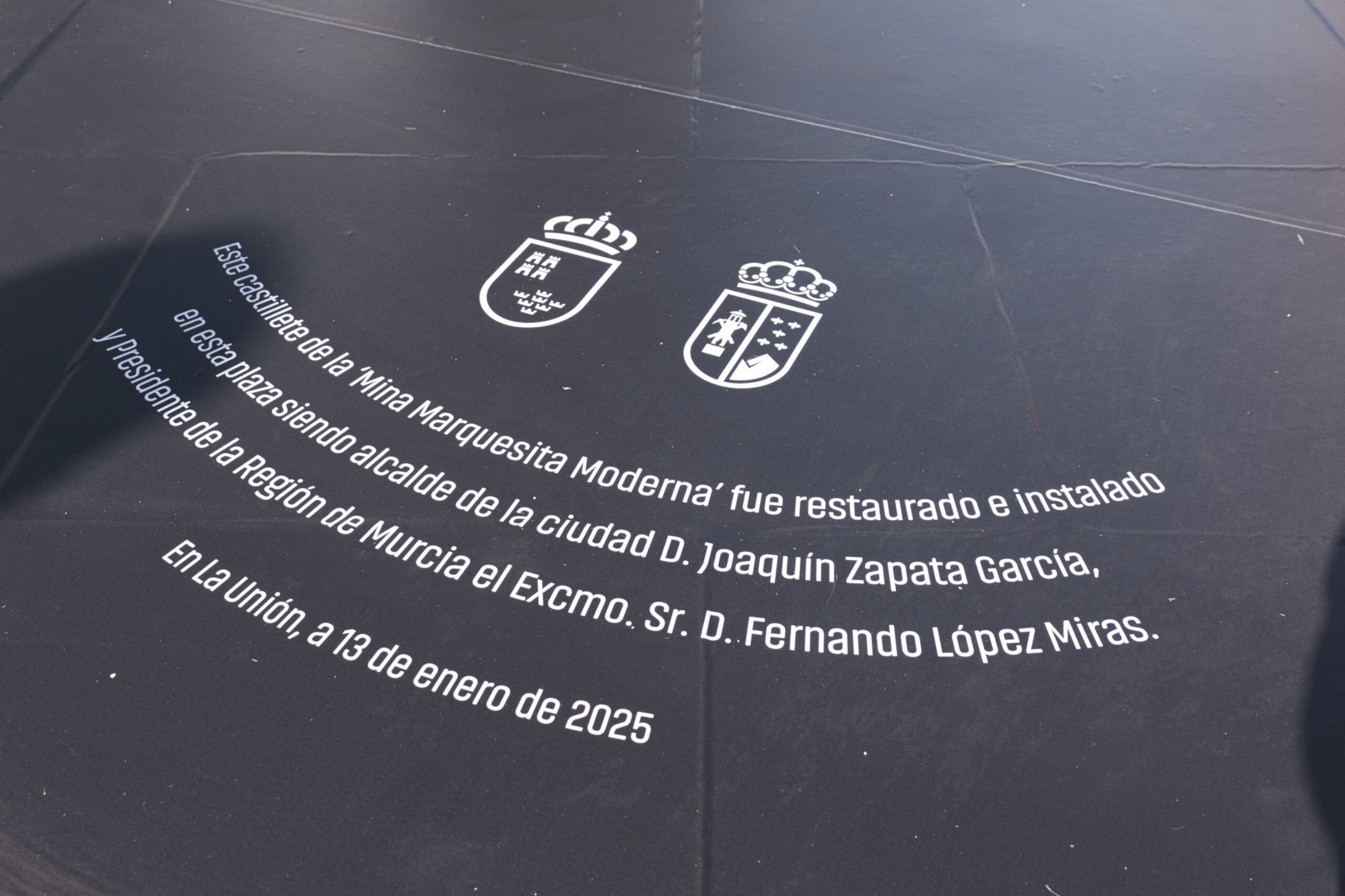 El castillete ‘La Marquesita’, uno de los símbolos de la tradición minera de La Unión, ha sido restaurado por la Consejería de Turismo, Cultura, Juventud y Deportes, con una inversión de 44.000 euros. la recuperación del castillete de la mina de ‘Marquesita’ en La Unión. La estructura ha sido reinaugurada hoy en su nuevo emplazamiento, la plaza del Liceo del municipio, tras el proceso de rehabilitación llevado a cabo en su estructura.