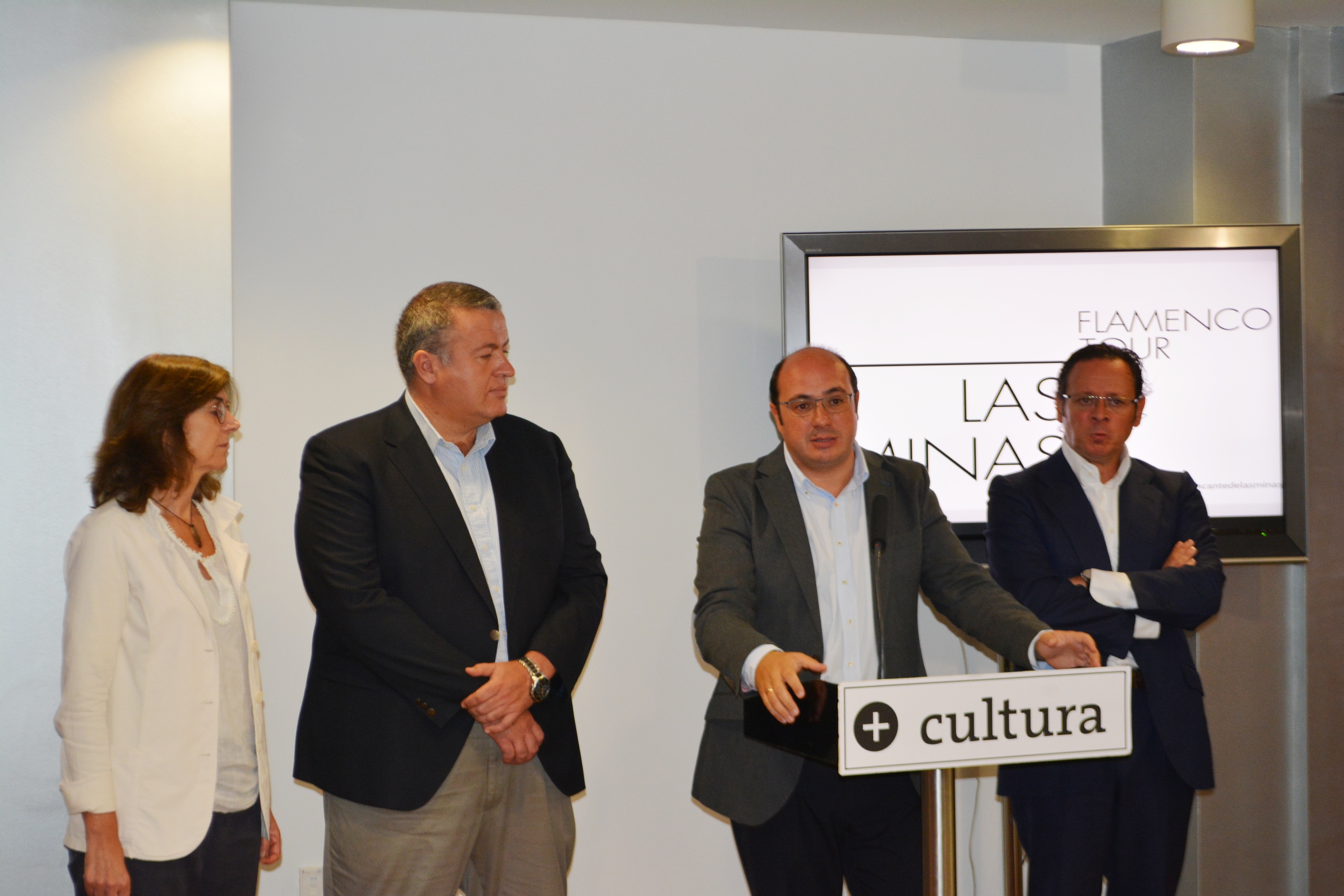 El Consejero de Cultura, Pedro Antonio Sánchez, y el Alcalde de La Unión y Presidente Ejecutivo de la Fundación Cante de las Minas, Francisco Bernabé, acompañados de la Directora General del Instituto de las Industrias Culturales y de las Artes, Marta López-Briones y del Consejero Delegado de las Minas Flamenco Tour, Aurelio Solana, han presentado esta iniciativa cuyo estreno tendrá lugar el próximo 8 de octubre en el Teatro Romea de Murcia. De esta forma, el Festival, el más importante del mundo, continúa su difusión durante todo el año y mostrando el flamenco y la esencia del Cante de las Minas tanto a nivel nacional como internacional.