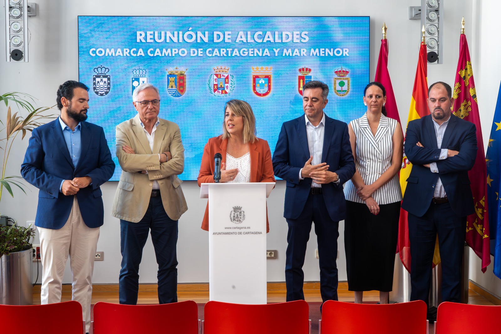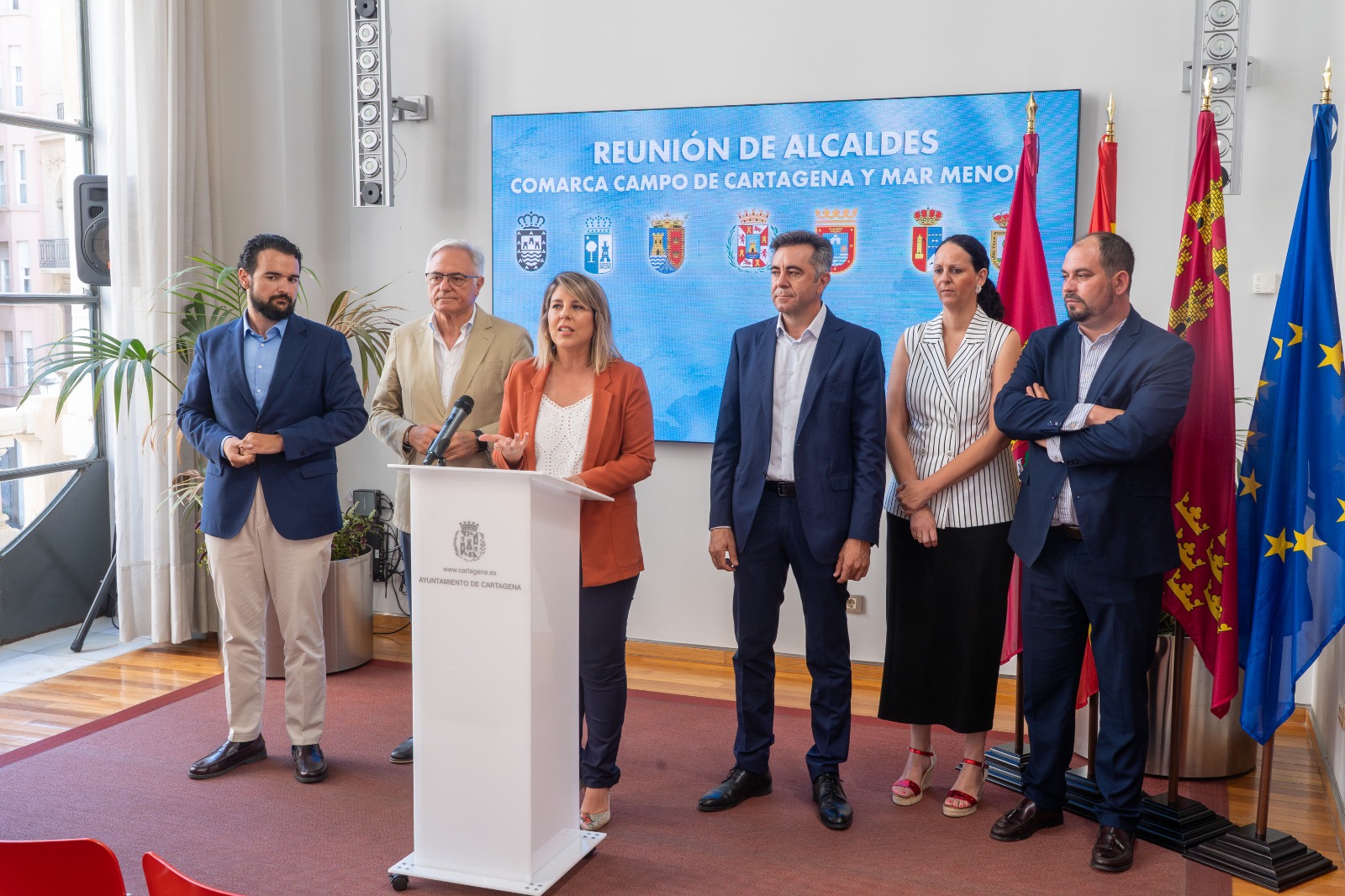 La Asociación de Municipios del Campo de Cartagena y Mar Menor trabajará en su primer proyecto europeo conjunto y ha comenzado a estudiar la creación de una denominación de origen para productos del campo, la ganadería y el mar. Así lo ha explicado este miércoles la alcaldesa de Cartagena, Noelia Arroyo, tras la primera reunión de la nueva entidad, celebrada en el Palacio Consistorial con participación de los siete ayuntamientos de la comarca.