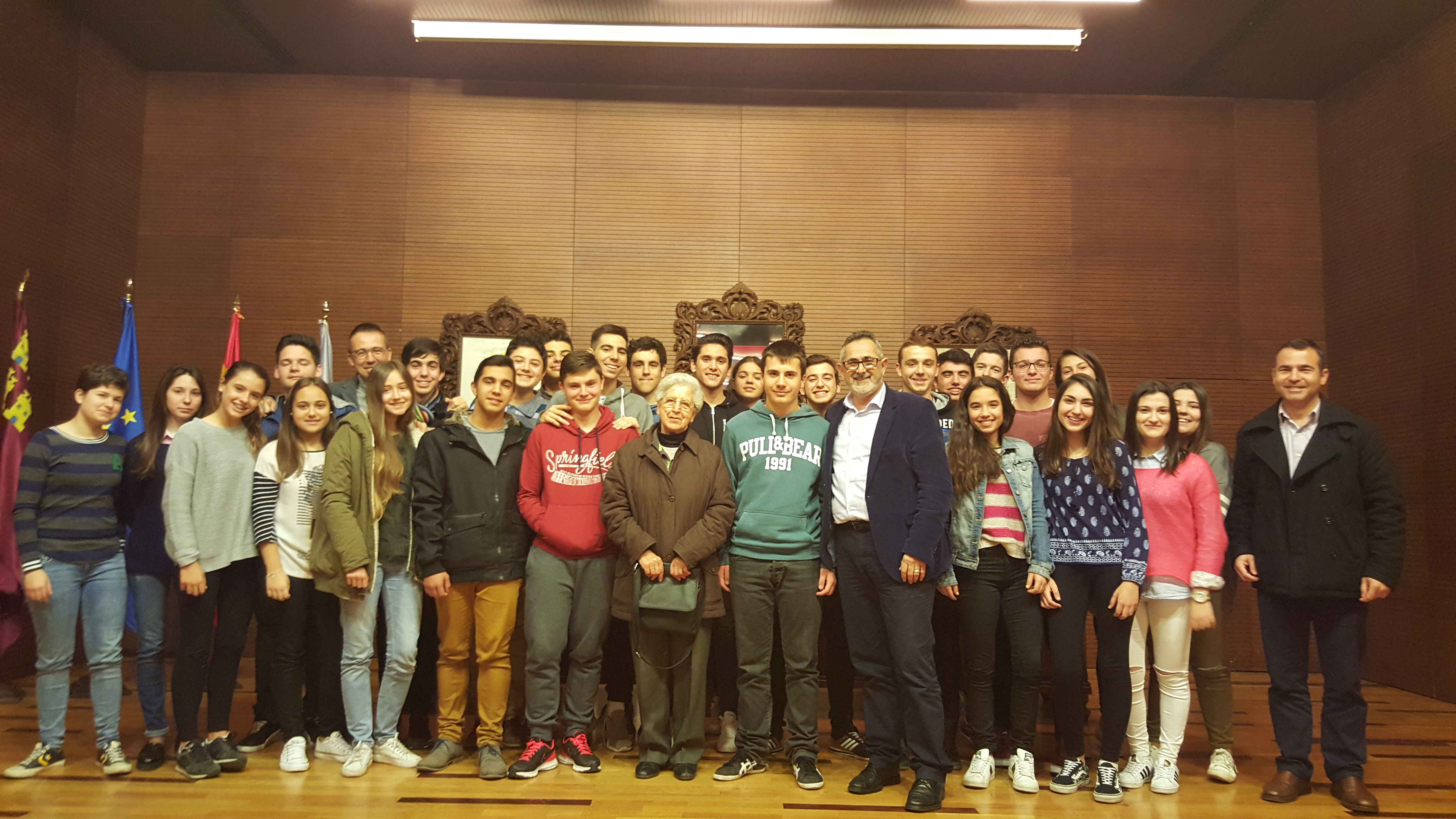 El Alcalde de La Unión, Pedro López Milán, ha recibido esta mañana en el Salón de Plenos del Ayuntamiento a los alumnos de 4º de la ESO del Colegio Ntra. Sra. Del Carmen, junto con uno de sus profesores, Ginés Caparrós, el Director, Juan José Serrano y la Hermana Carmen Peralta.